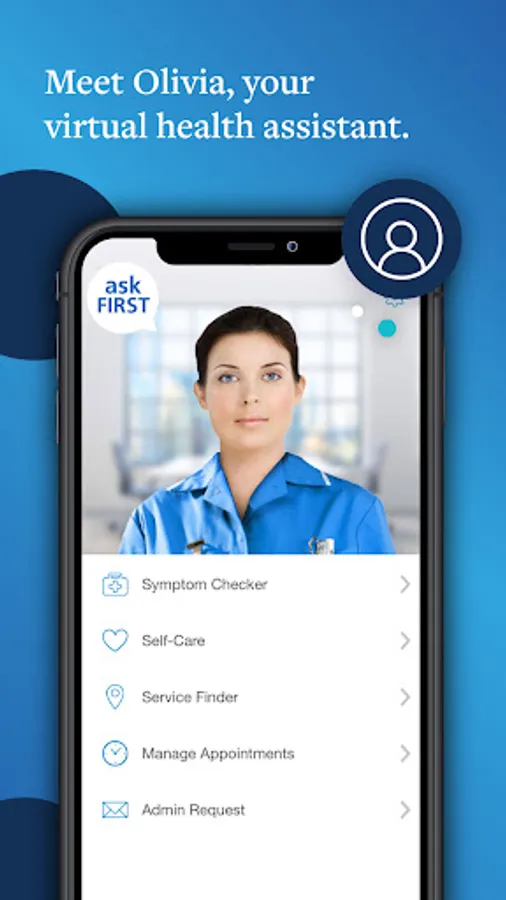 AskFirst provides you with improved access to health and care advice. You can talk through your symptoms in complete confidence with Olivia, a virtual health assistant.
