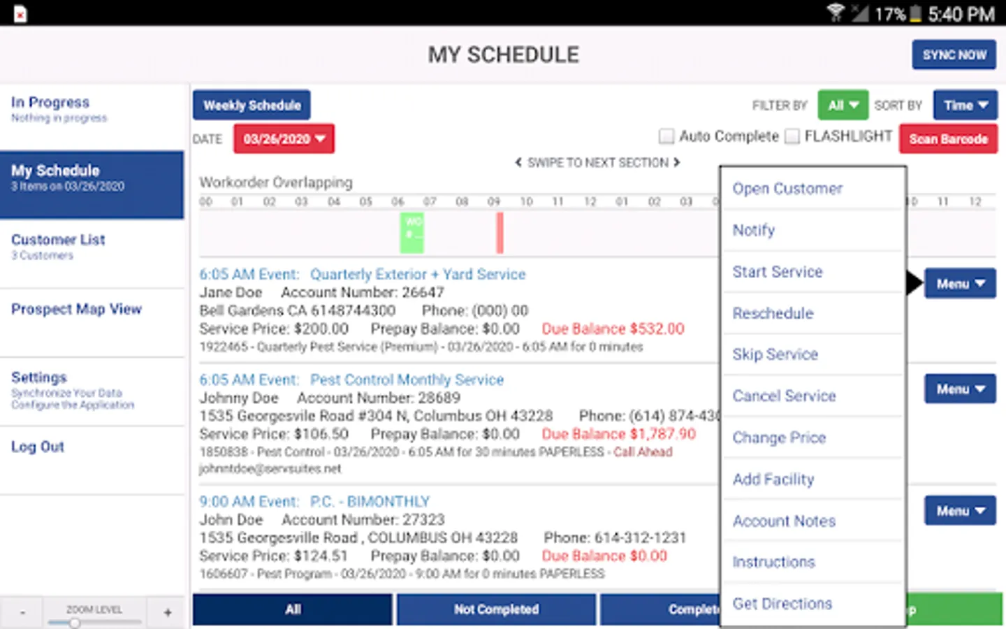 ServSuite Mobile for your Android Tablet is a servicing and customer management application that gives ServSuite software customers real-time access to scheduled appointments and customer-related information in the field. You can synchronize your scheduled appointments, enter servicing-related details, and capture both customer and employee signatures. Using the built-in email capabilities, you can notify customers when you are on your way, and send copies of work orders and invoices without the need for printing.