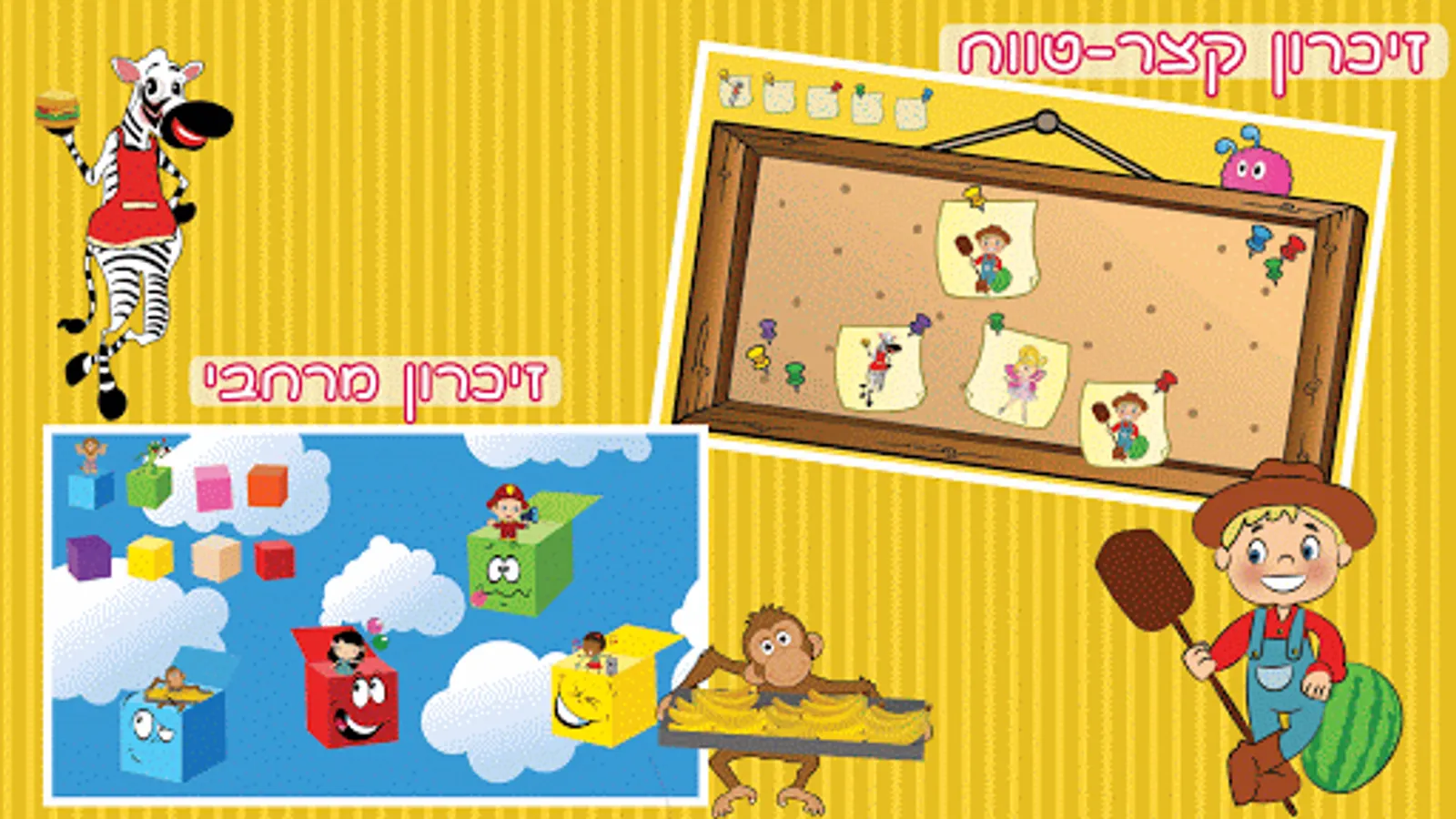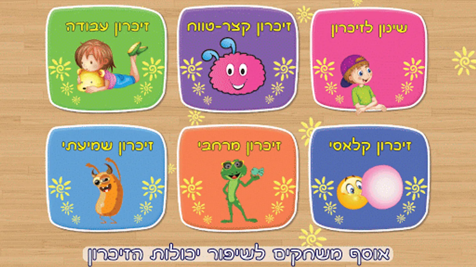 The games in Hebrew are fun and original for improving the various memory abilities.