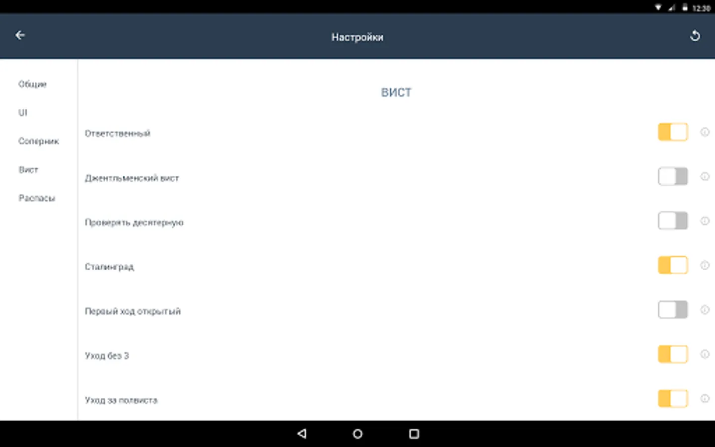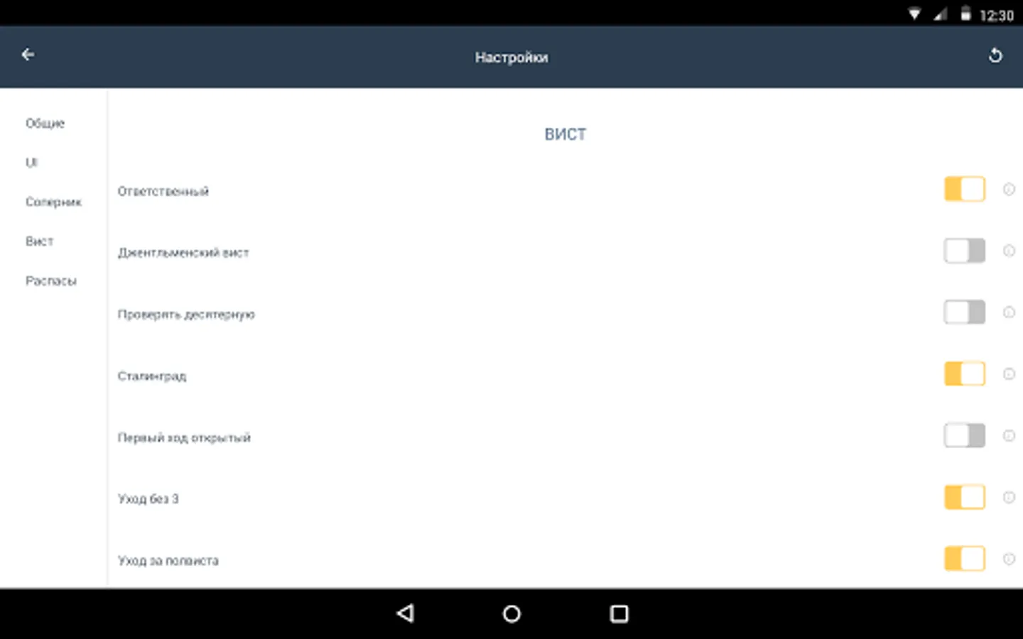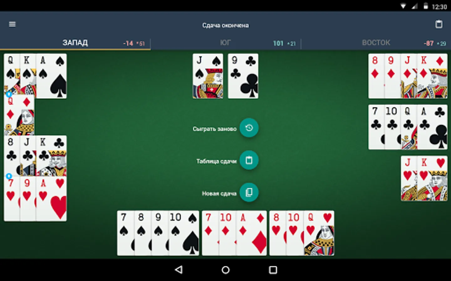 Wide array of options and conventions will allow every player find their familiar game type. Besides usual three-player game we are the only pref-app that allows two players (aka Gusarik or Hussars pref) and classic 4 player game! Now it makes SmartPref the ONLY preferans game with COMPLETE set of conventions and game variations.
