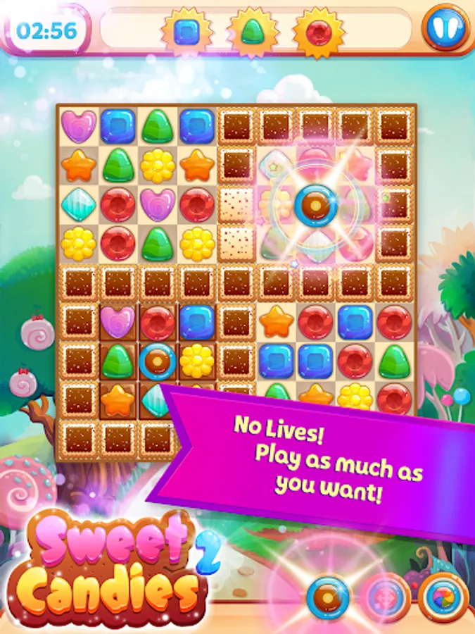 If you like candy themed match 3 puzzle games, click and match, swap and match or any type of casual match 3 puzzle game then Sweet Candies 2 is the right game for you!