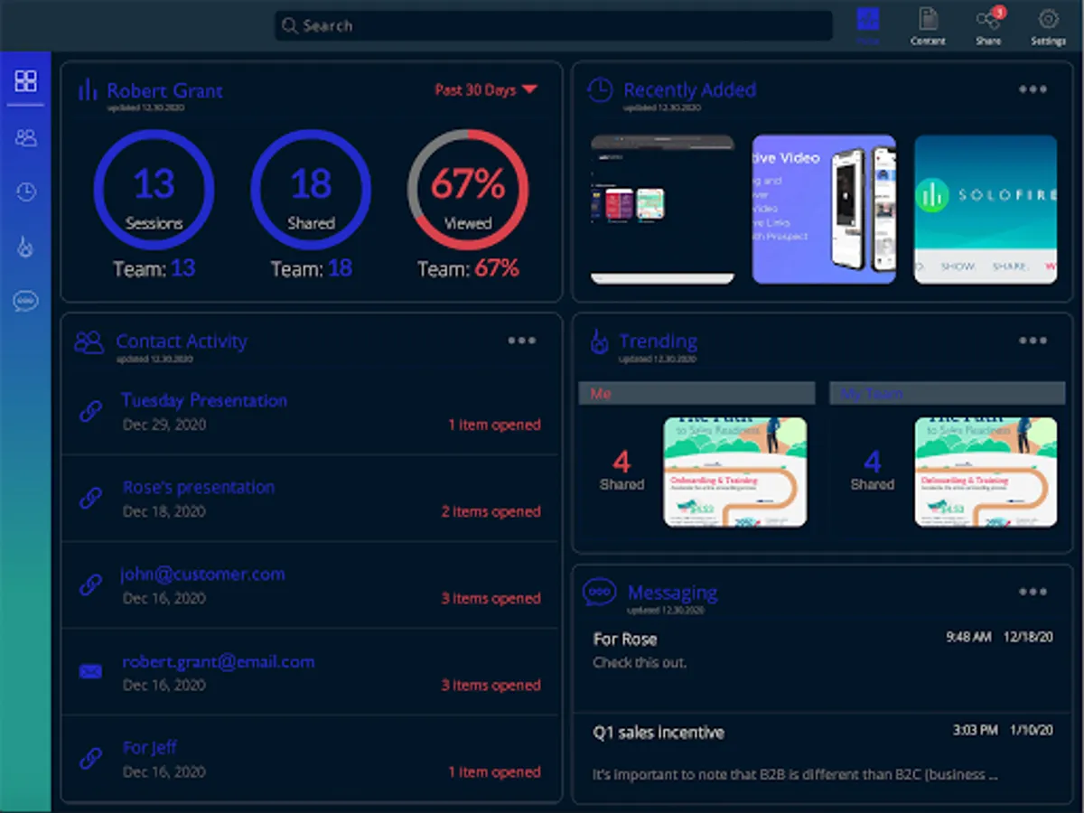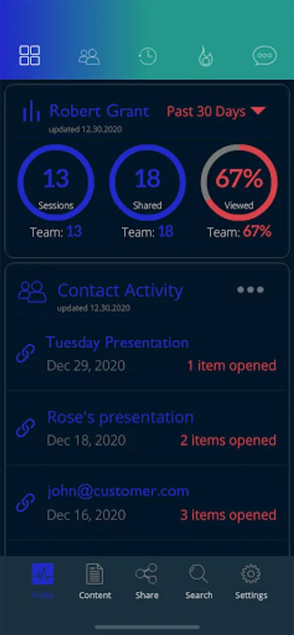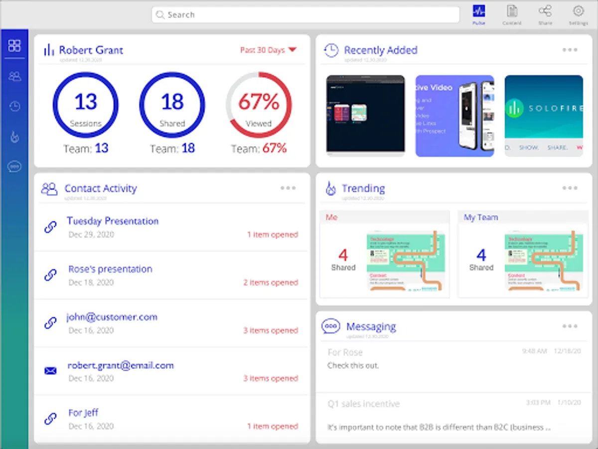 •Detailed contact activity every time you share content from our proactive Pulse Dashboard