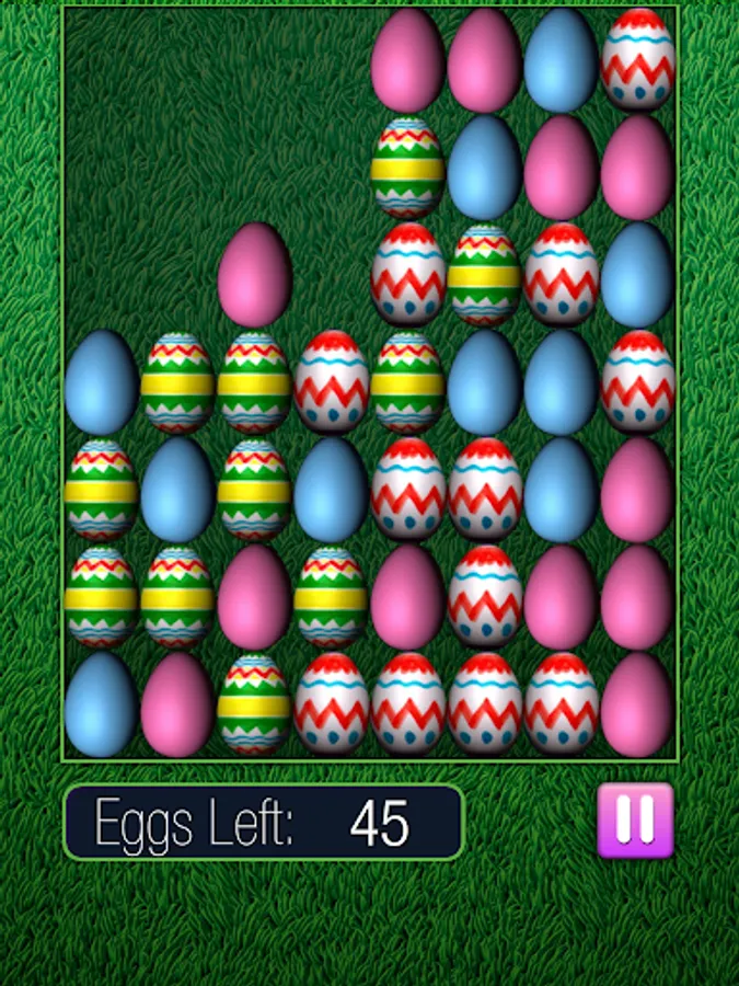Collect the easter eggs by matching them by color and design. Click, match, crack and collect! It seems easy but it's a challenge to clear them ALL! Only a score of 0 is a win!