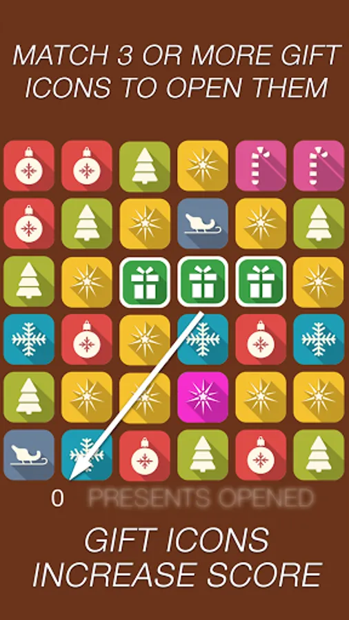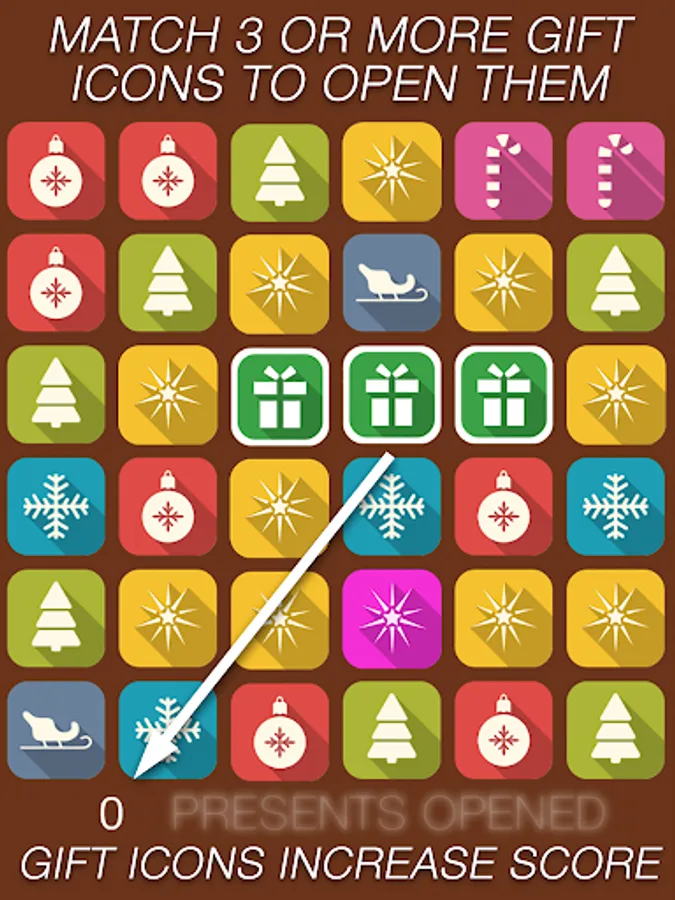The only way to earn score points in this game is by matching the gift present icons: 🎁