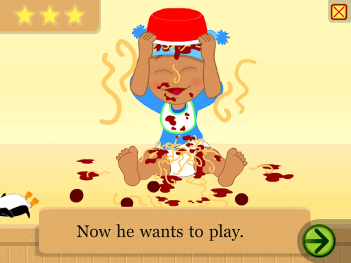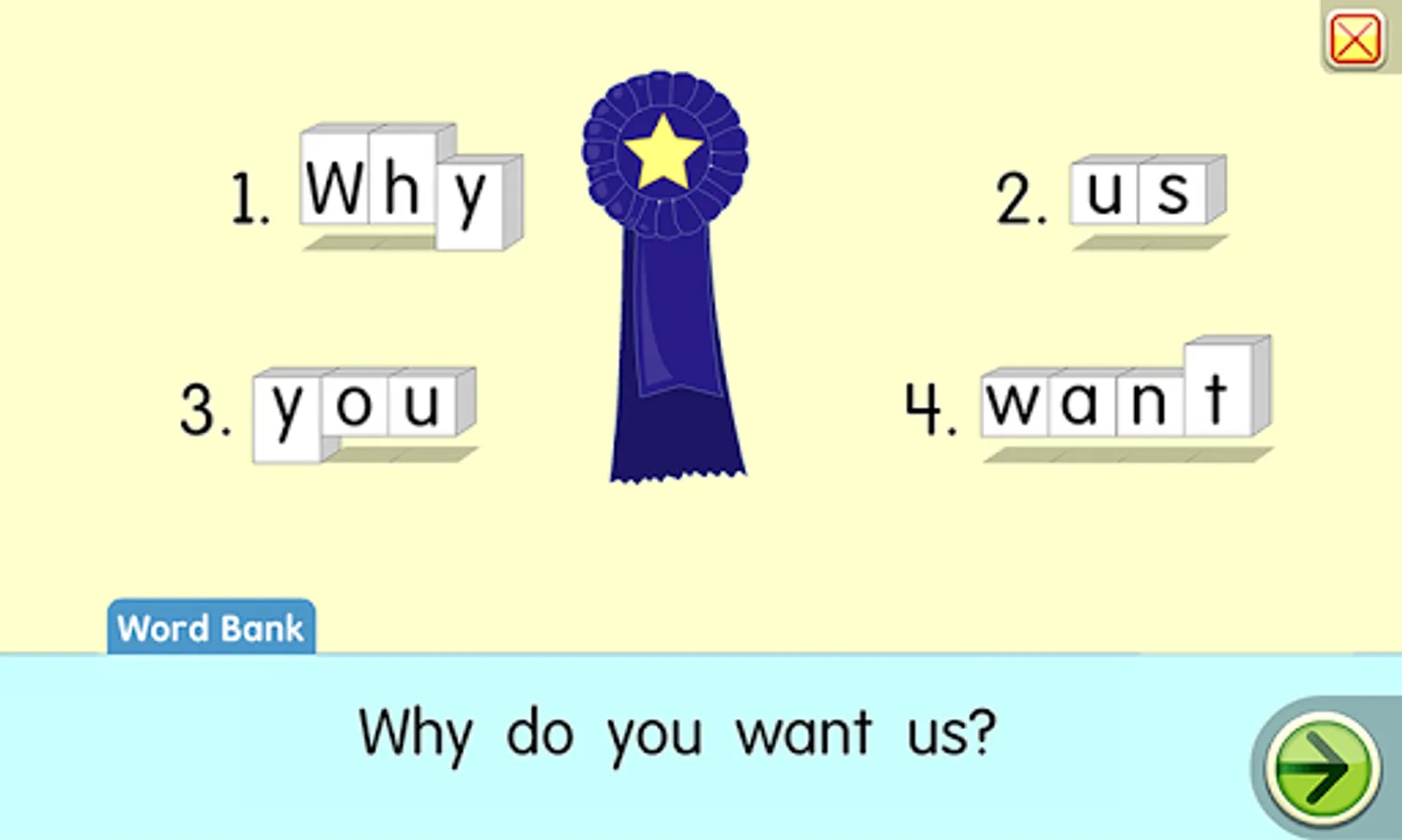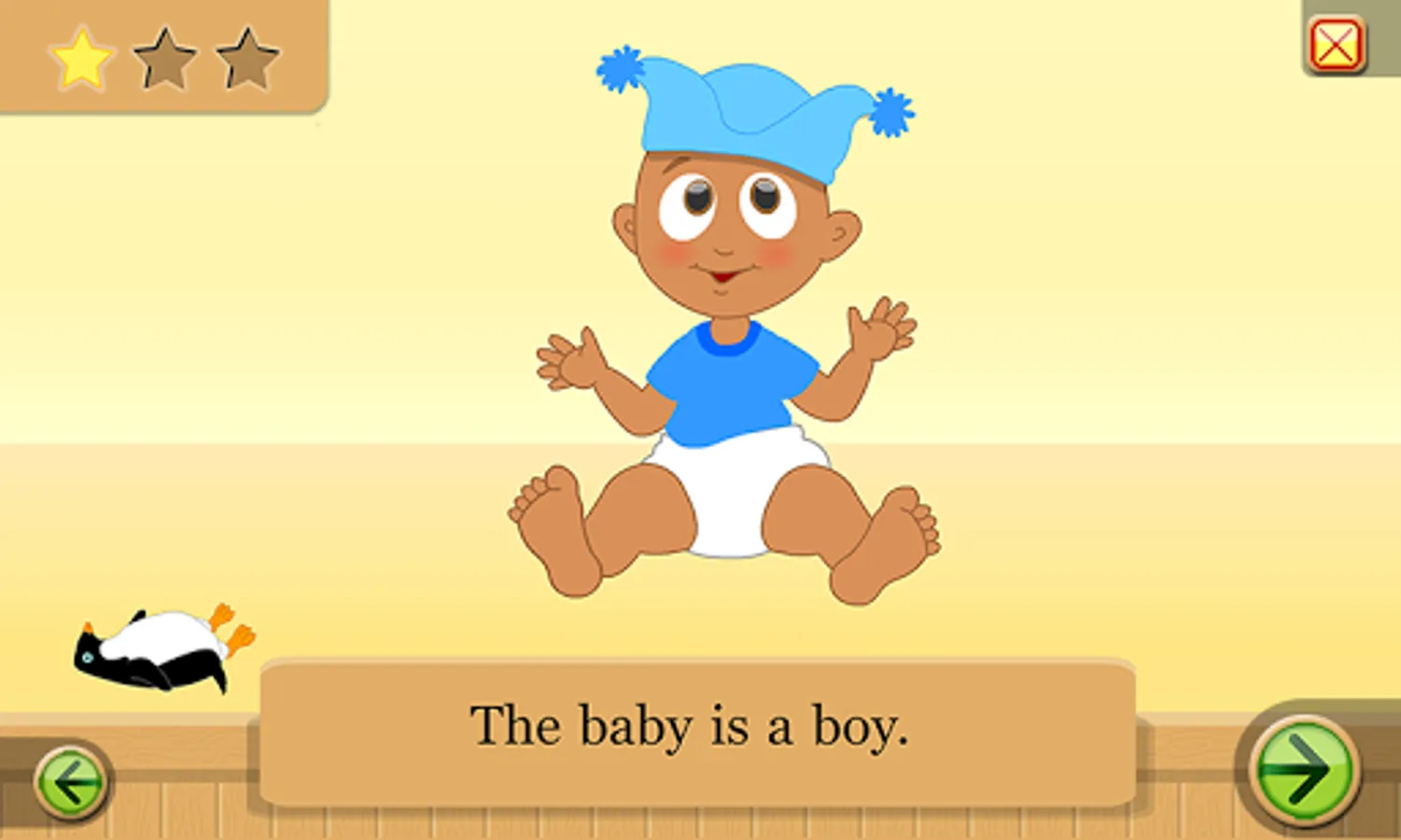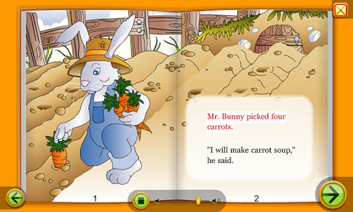 The stories in this app contain a controlled vocabulary set, using the words most frequently encountered in print. The stories and activities reinforce high-frequency words, also called “sight words,” in sentences rather than in isolation. This ensures the young reader will make a meaningful association with each word and more readily commit it to memory. The stories can be read aloud to model the qualities of fluent reading: intonation, expression, inflection and rate. Users can enable or disable the AutoRead feature. Speaker buttons are supplied for fluency when AutoRead is off.