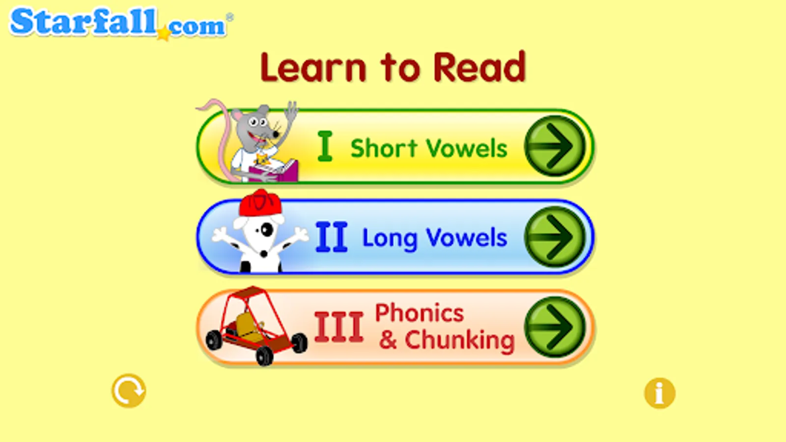 The Starfall Learn to Read FREE app is made possible by the member supporters of Starfall.com, a publicly supported nonprofit. The activities at Starfall.com motivate through exploration, positive reinforcement, and play. For accessible content please visit www.starfall.com/h/accessibility.php