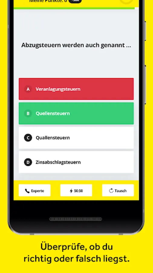 "Who will control expert?" Is a multiple choice quiz that allows you to test your knowledge on the subject of taxes. With the new high-score feature, you can also measure with other players now. The three most points have also regularly the chance to win attractive prizes.