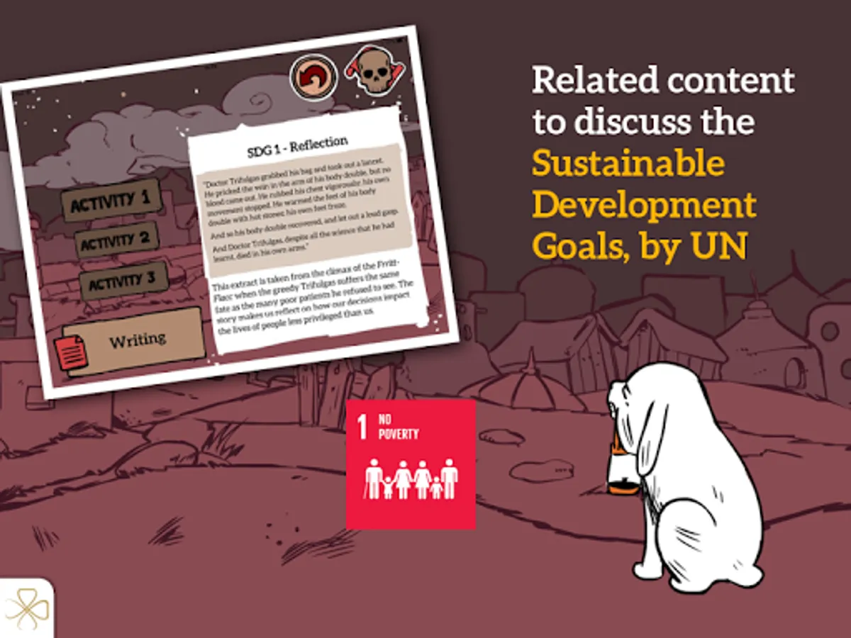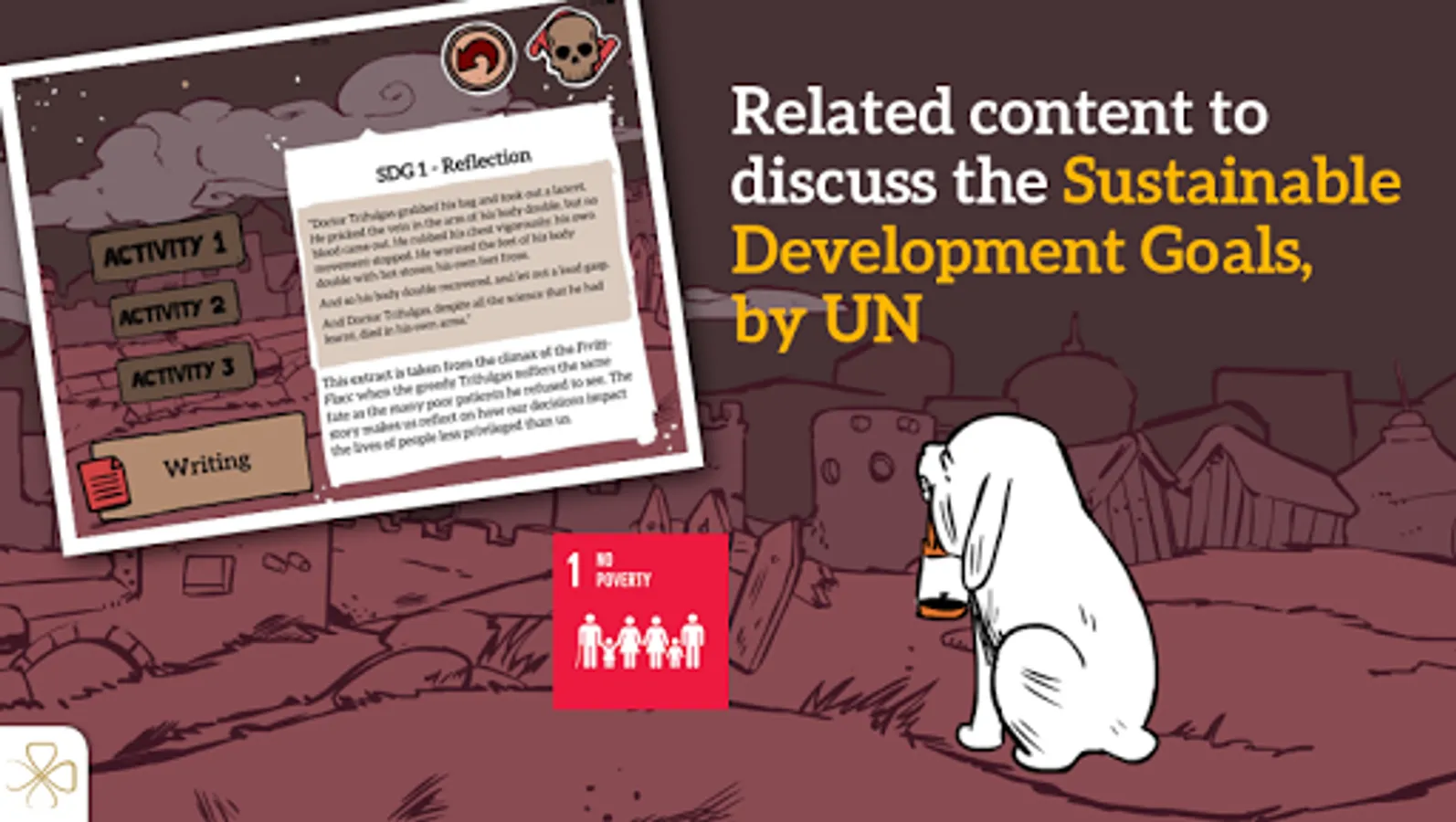 The engaging narrative, full of interactivity and sound effects that completes the story, invites the youths to reflect on ODS 1 (no poverty) and how biology can collaborate to reduce poverty in the world.