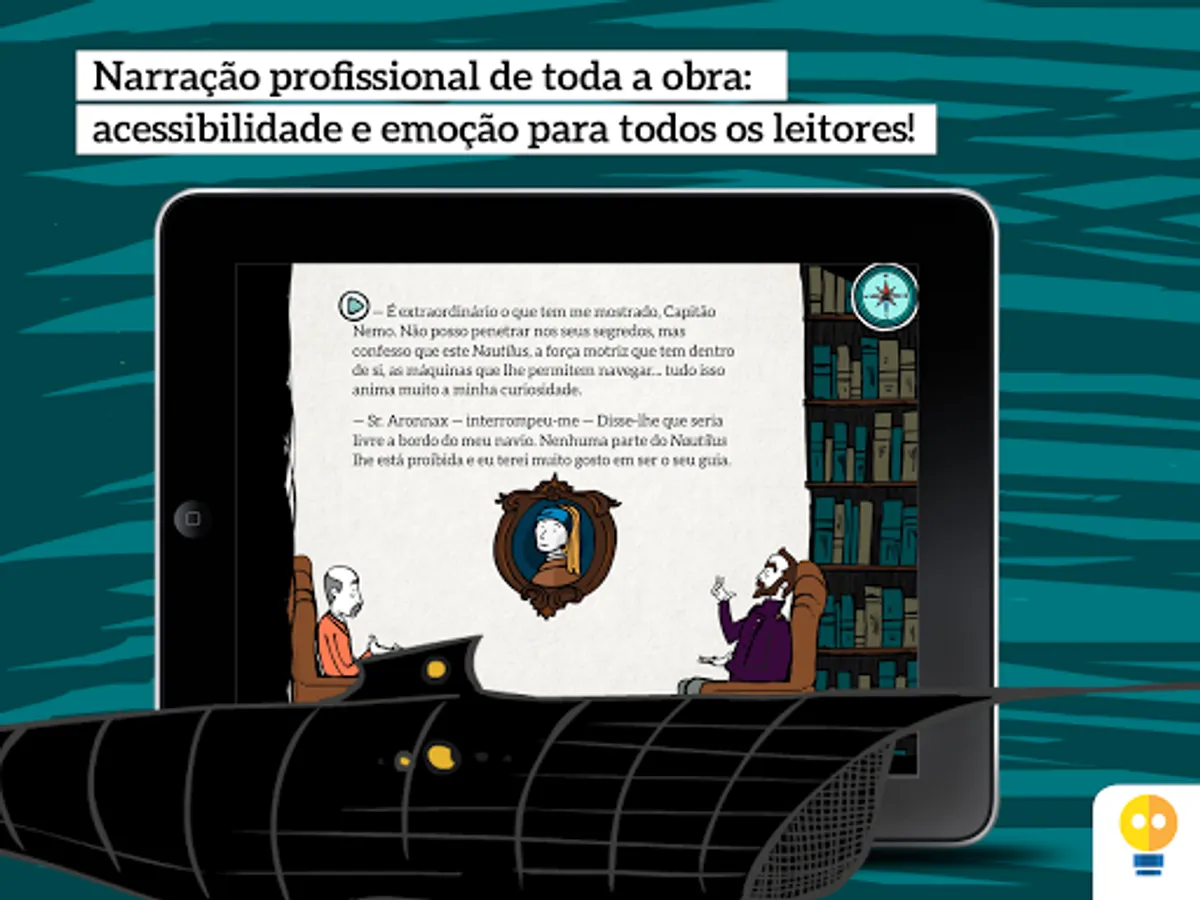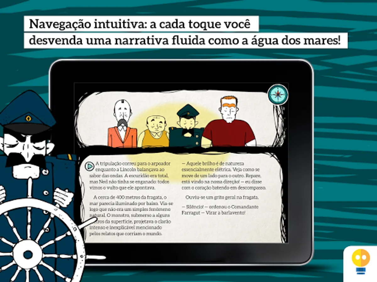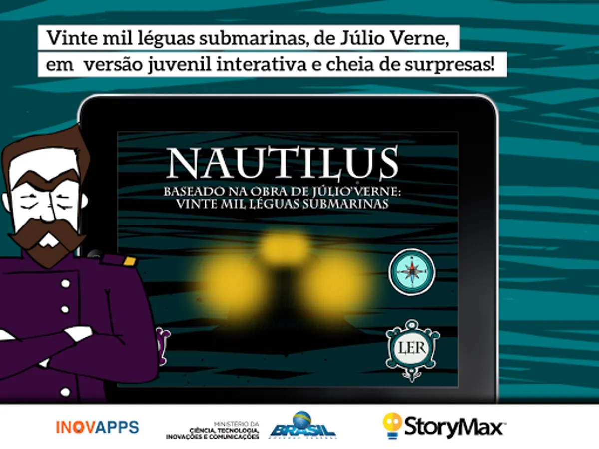 Nautilus is an interactive adaptation of Jules Verne's "Twenty Thousand Leagues Under the Sea", which inspired innovators and shaped the literary taste of all time. Its proposal is to lead young people to experience innovative thinking, combining science and fantasy.