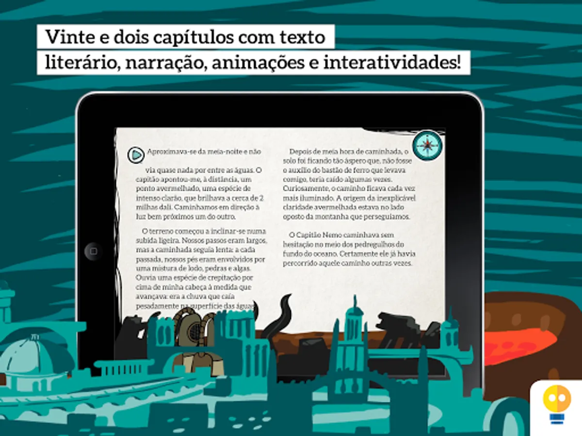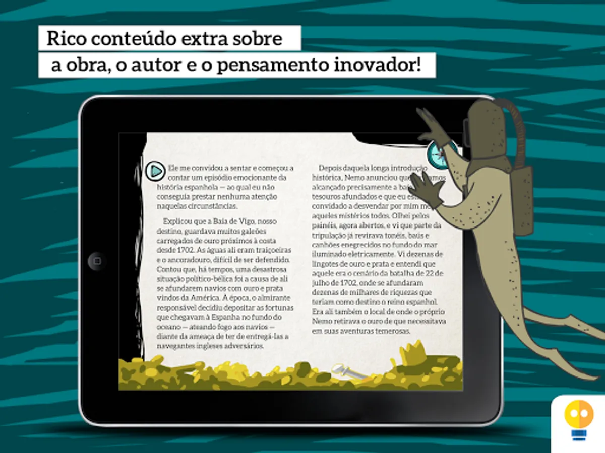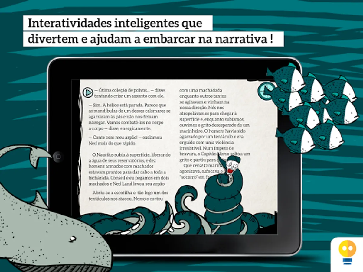 Nautilus is an interactive adaptation of Jules Verne's "Twenty Thousand Leagues Under the Sea", which inspired innovators and shaped the literary taste of all time. Its proposal is to lead young people to experience innovative thinking, combining science and fantasy.