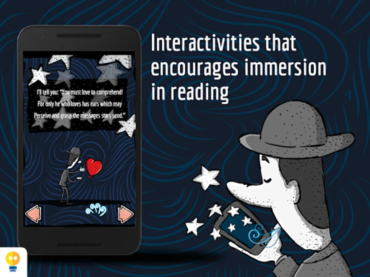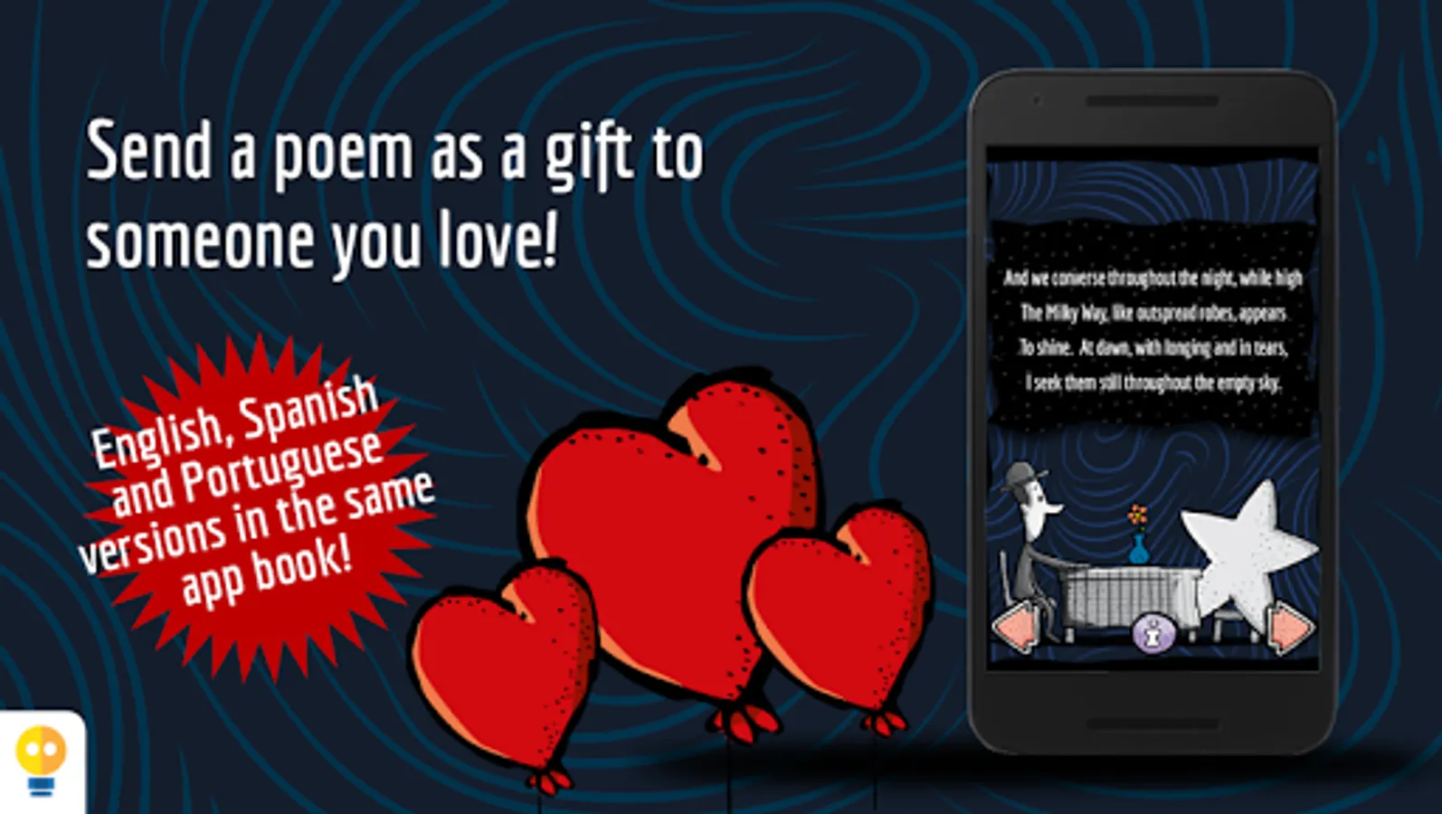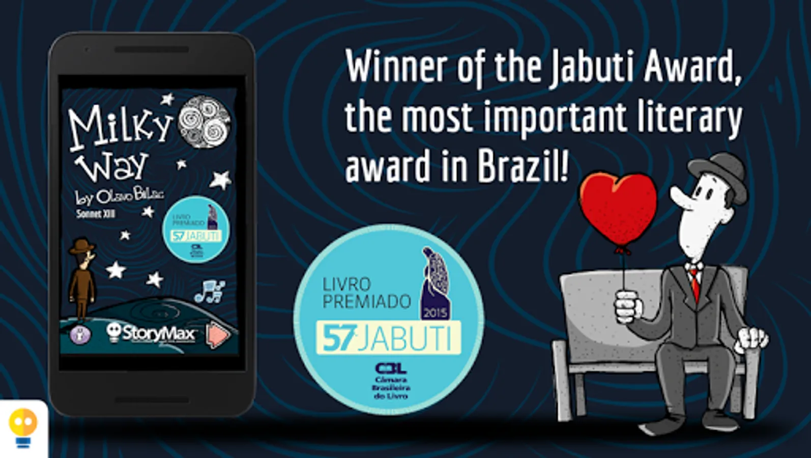 In Milky Way, the reader can reaffirm or discover the taste for the poem as a literary genre, by involving itself with the words, sounds and subtle poetic interactivities, like opening windows moving the stars with your breath, touch and hear the stars, and float alongside them in a bright night. The extras talk about the life of Olavo Bilac and present a summary on the parnassianism.