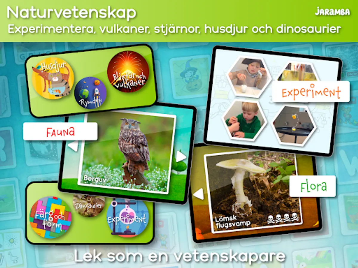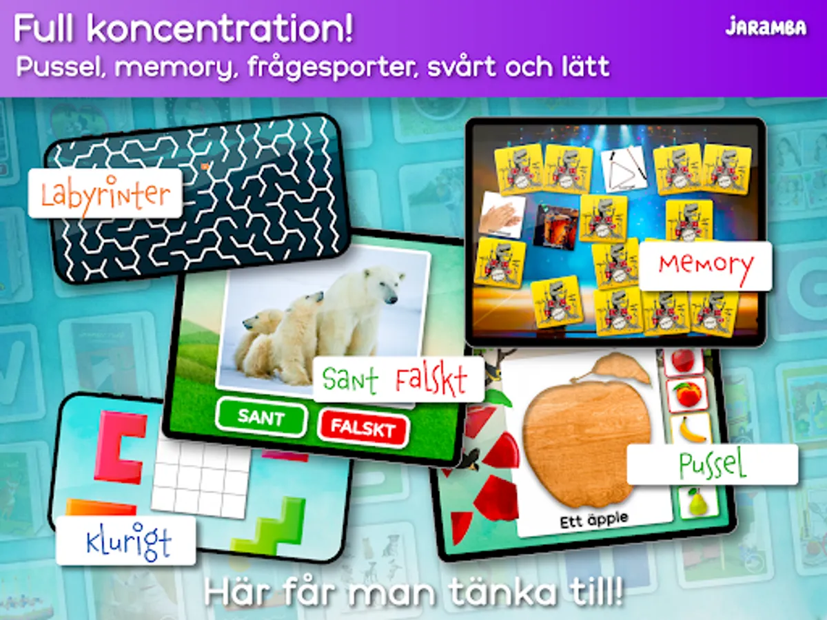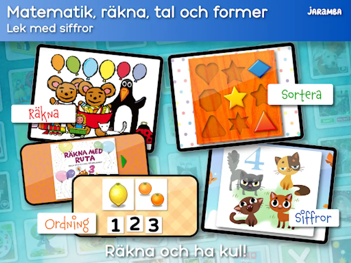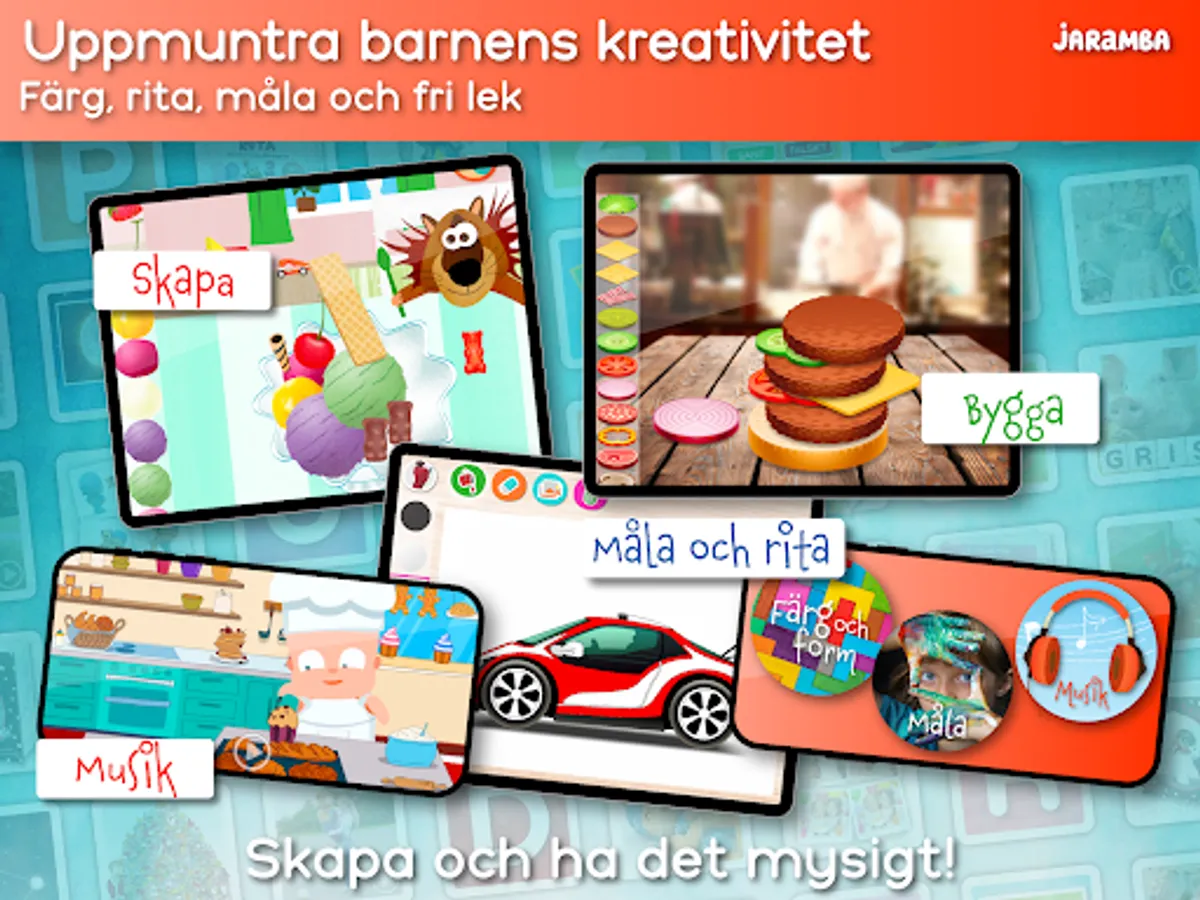 Jaramba was created out of a belief that digital tools have an important role to play in children's learning and that they should develop children's creativity and curiosity. We are driven by creating a safe and playful place, free from advertising, links and purchases in the app. You as a parent do not have to look for apps that are suitable for children and we protect your child's integrity to 100 percent.