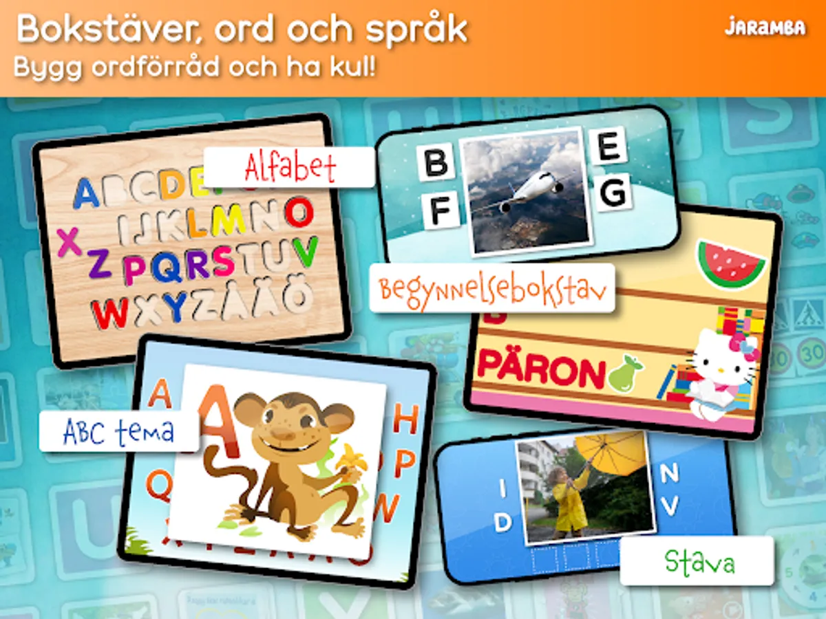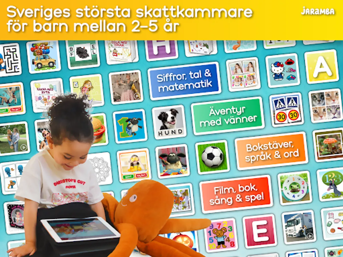 Jaramba is Sweden's largest treasure trove for children between 2-5 years, filled with movies, books, songs and games. In a fun way, Jaramba develops vocabulary and teaches children to count and spell. Jaramba contains unique material as well as collaborations with well-known children's characters, sorted into playlists that are updated throughout all seasons of the year. By combining exciting adventures with educational content, children are inspired to play to knowledge.