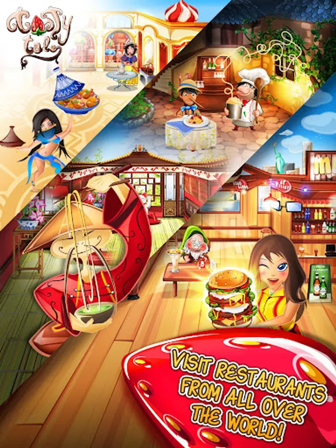Travel the world and serve up your classic creations to wonderfully amusing cute characters such as Grandma, Pinocchio, The Three Little Pigs, Red Riding Hood, and many more in places like „Petit Paris“, „El Sombrero“, „Mermaid Kingdom“, „The Candy Factory“ or the „Casino Palace“.
