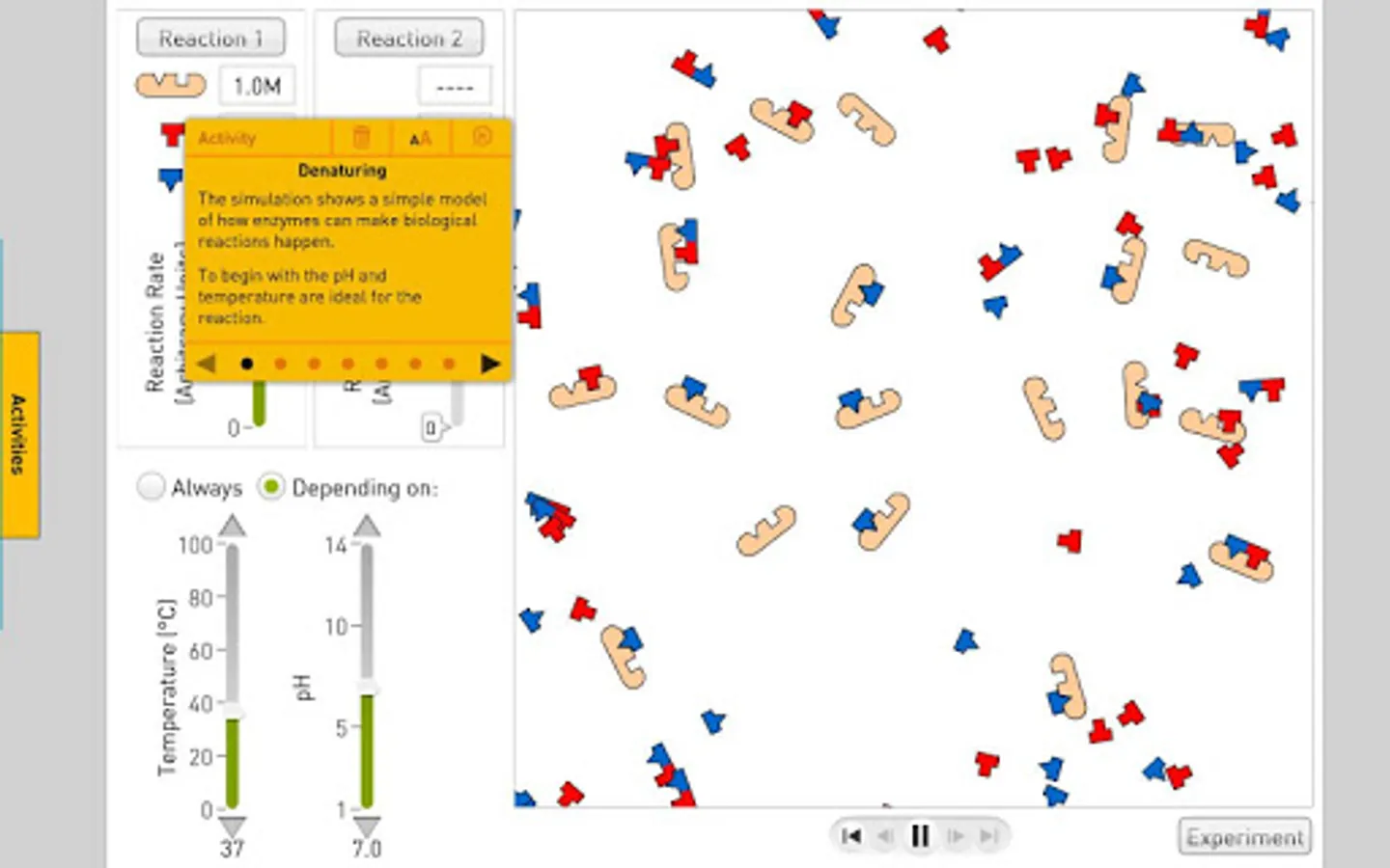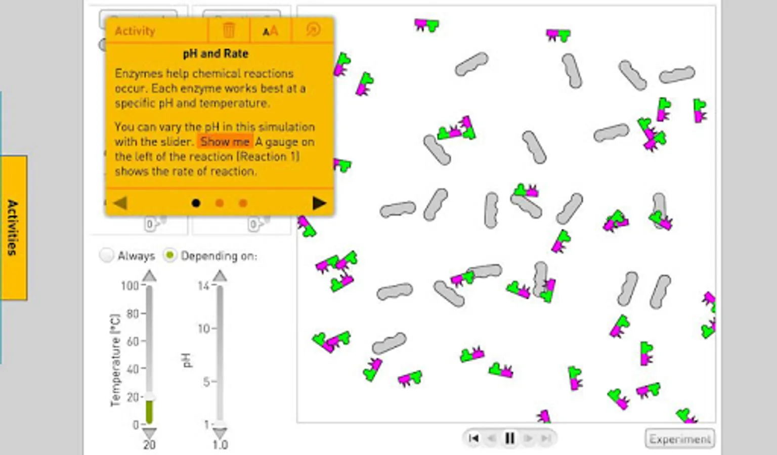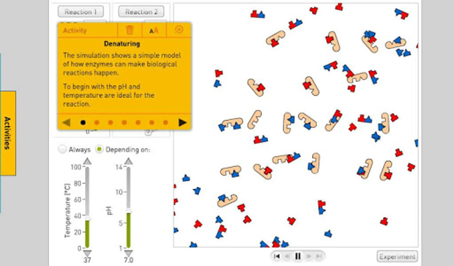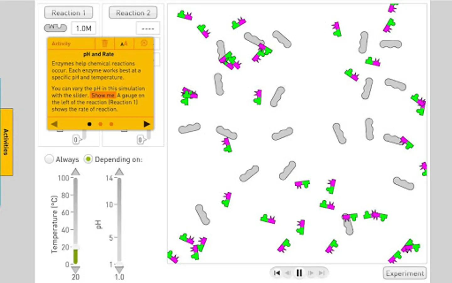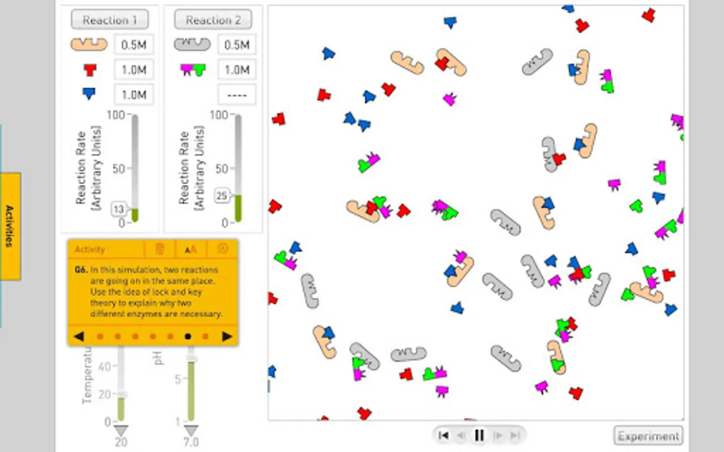 Enzymes gives you a simulation of enzyme-catalysed reactions. You’ll use it to cover: