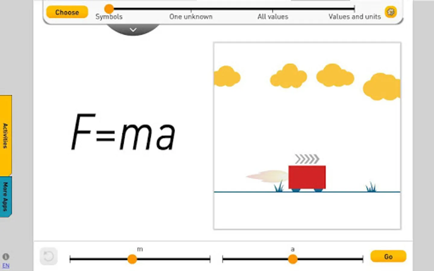 Formulas for Physics gives you the perfect way to introduce physics formulas, each with a simple animation and an interactive formula. You’ll use it to cover:
