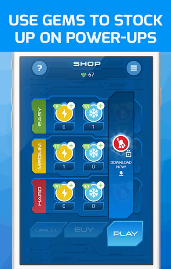 > DOWNLOADING POWER-UPS – Once a lifeline has been unlocked, players must download the power-up in order to use it.