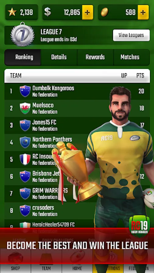 Show off your manager skills and win the league! Earn great rewards and unlock new gear as you move up the ladder.