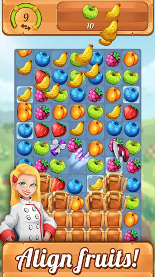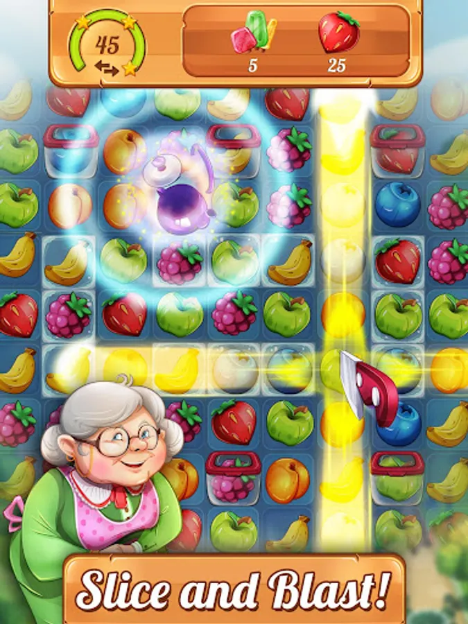 * Colourful Match 3 levels, full of fruits, which will give your talents a great challenge!