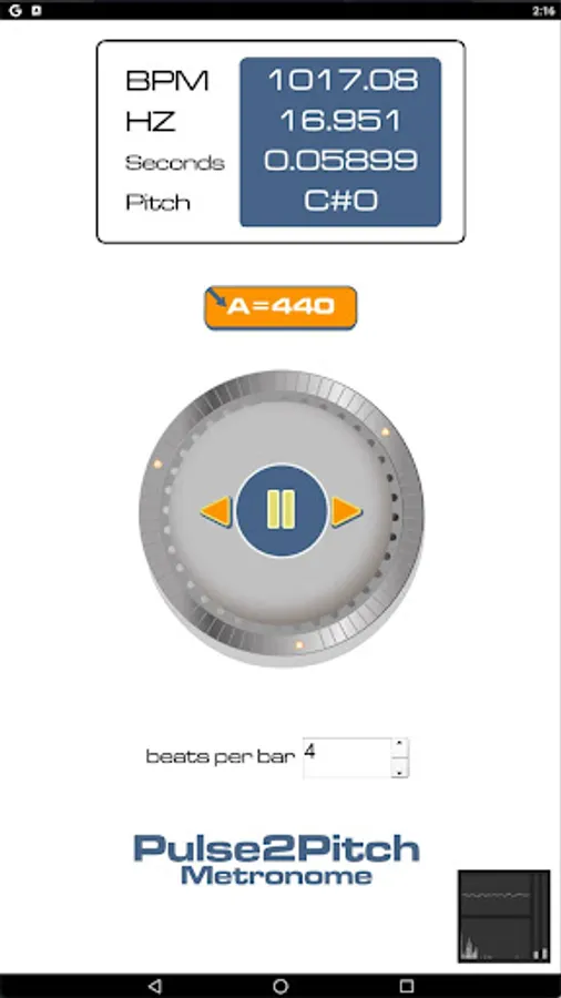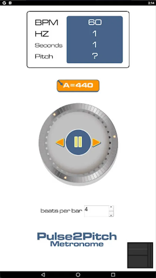 Pulse2pitch makes a continuous link between the two zones of rhythm and pitch crossing the boundary zone of shivering , laughter and rolled Rs. In this inbetween zone we experience repetitions but they are too fast to synchornise with. Zones have their favoured unit of measurement , pulse in Beats per Minute, pitch in Herz ( vibrations per second). Both units are shown across in all areas. For comparison the period in seconds is also shown. Users can enter pulse by tapping or by entering digits. Pitch can be entered numerically or by letter names.