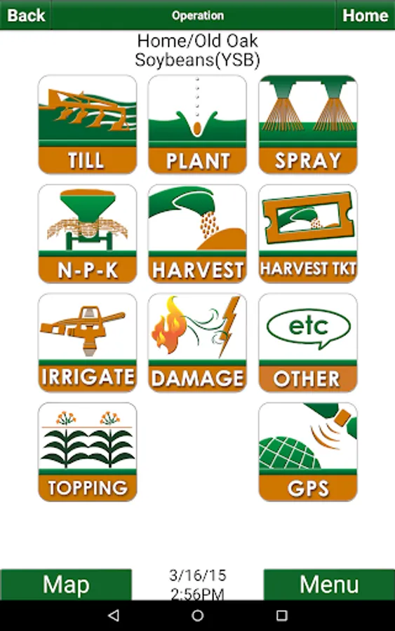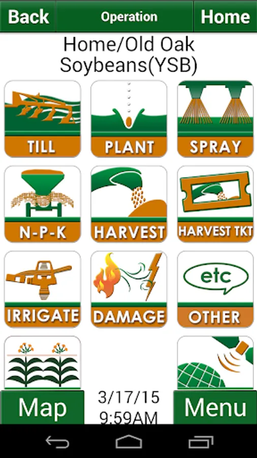 •Farm operation records (till, spray, plant, harvest, etc.)