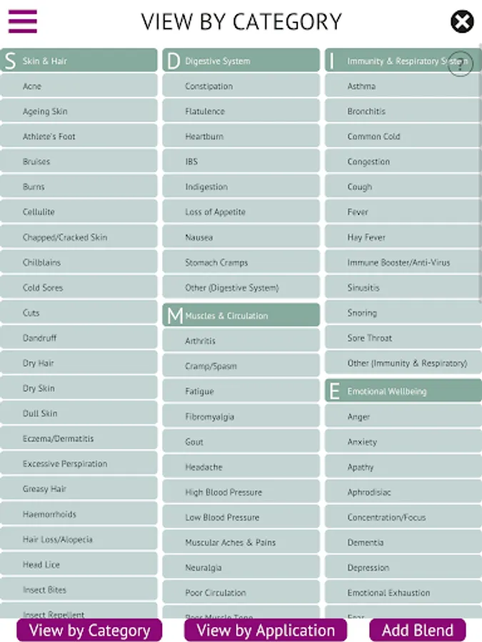 - Need inspiration? Browse hundreds of aromatherapy blends, organised by category and method of application