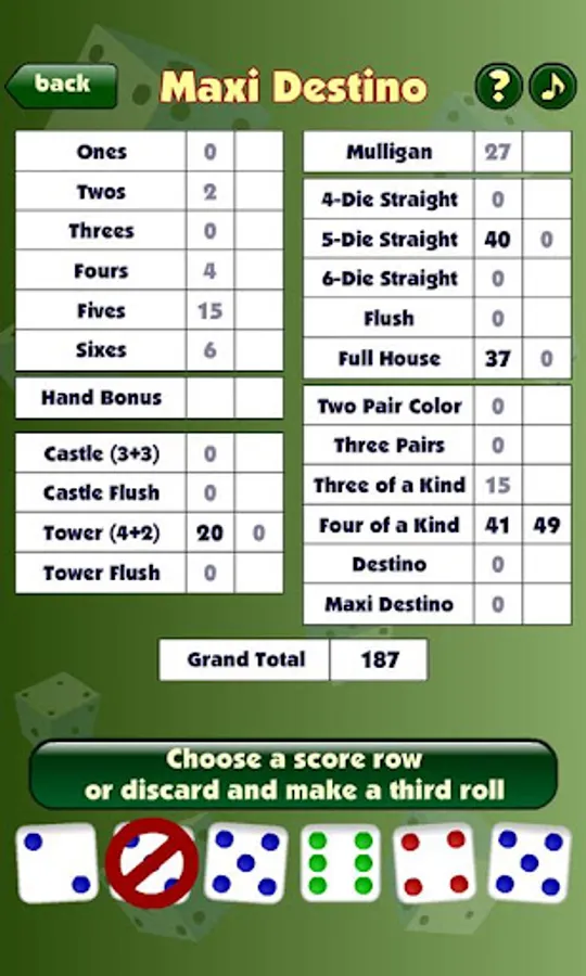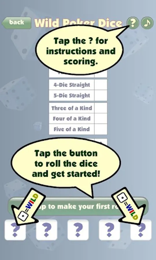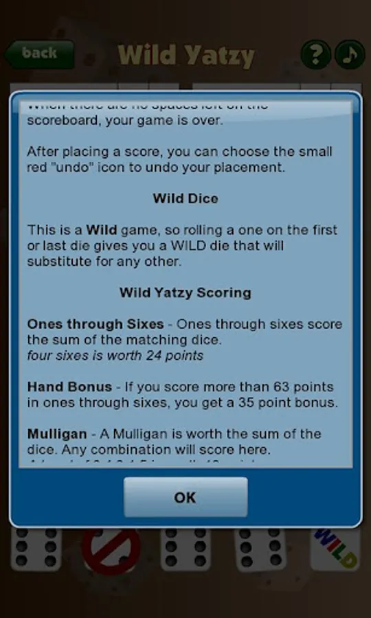 Dice-A-Rama Deluxe contains the original five Dice-A-Rama dice games as well as five brand new ones. In addition to the two Yatzy games in the original, there are two new variations with "WILD" dice. You also get a new Poker Dice game with wild dice, an exclusive game called "Maxi Destino", and a really frustrating quick-playing game called "Crag".