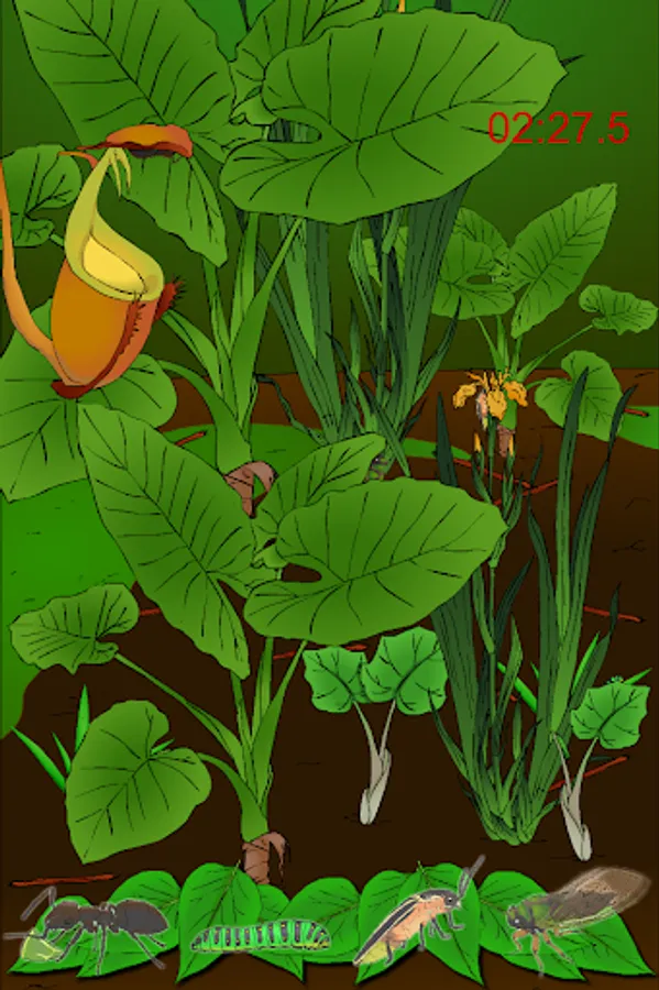 Find the hidden insects in the game. When you find an insect it will come to life, mimicking the way it moves in real life. You have 3 minutes to find all the hidden animals (insects) in each of the 5 levels of the game.