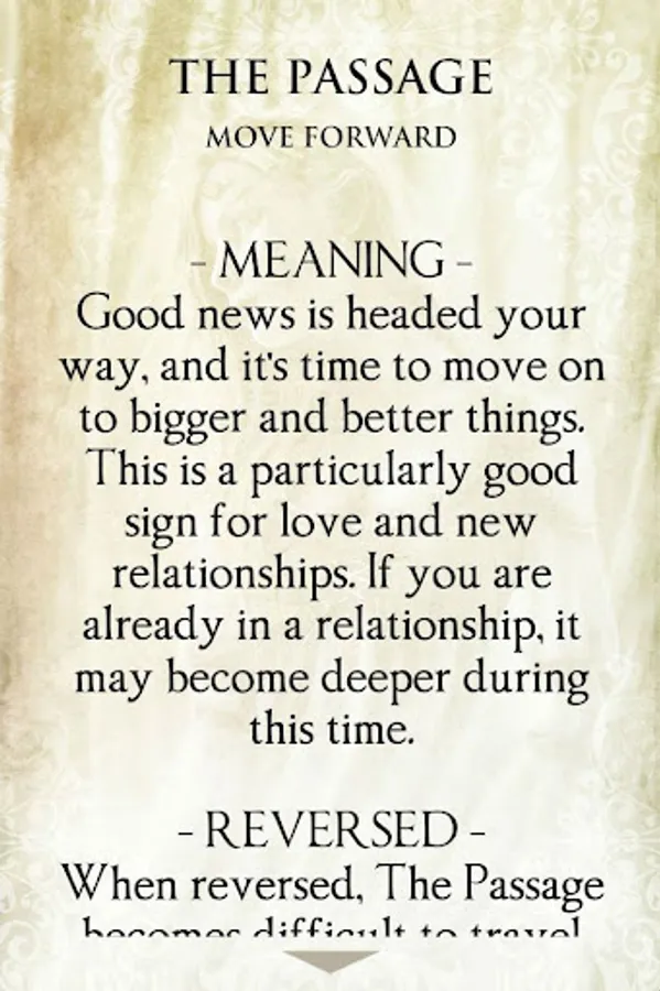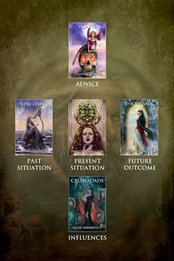 - 3 types of readings (1, 3 or 5 cards), including reversed cards meanings
