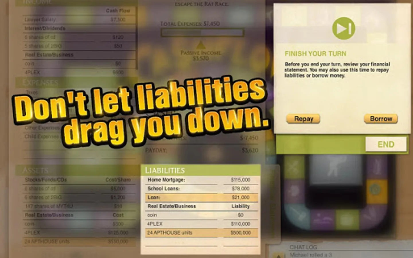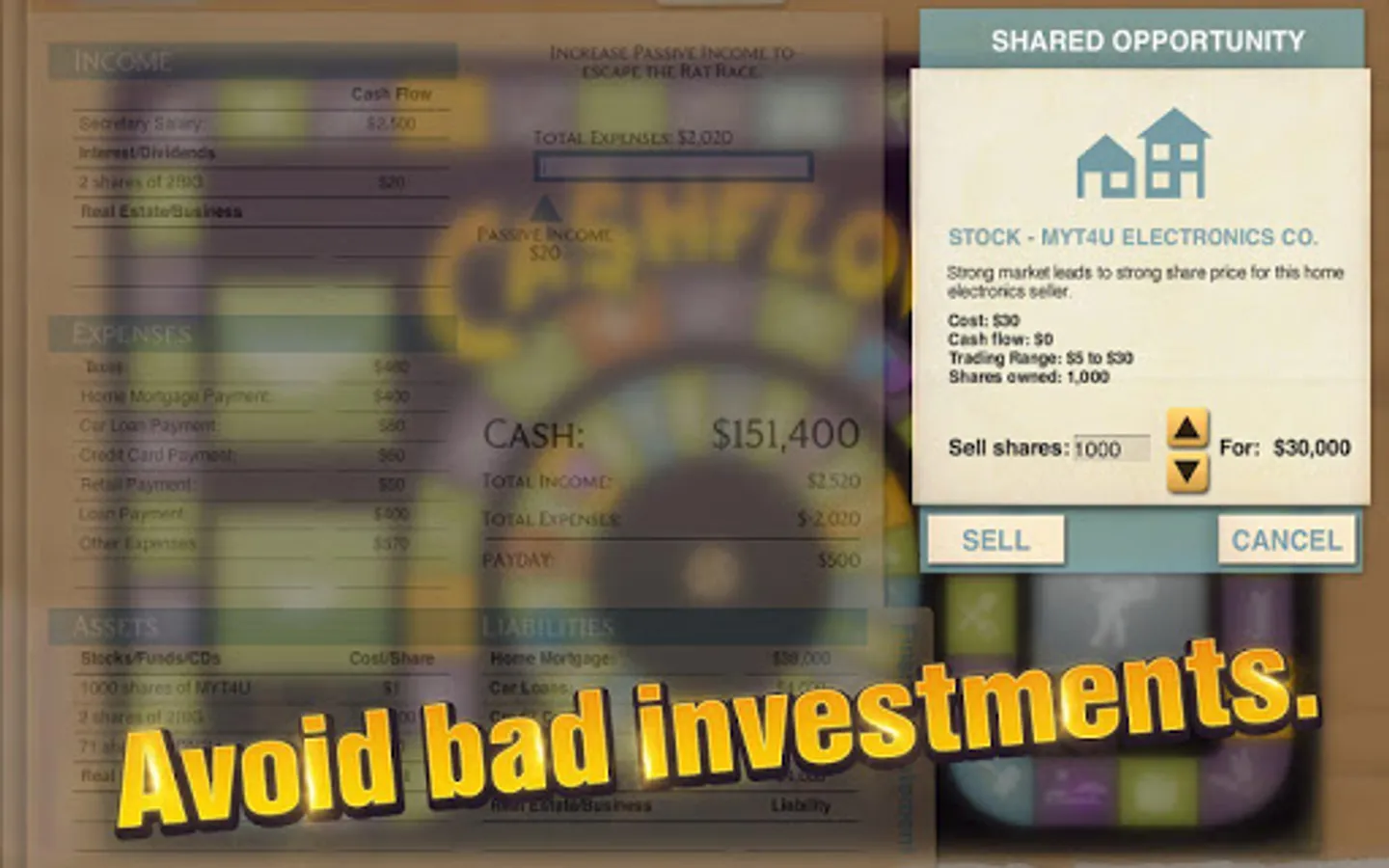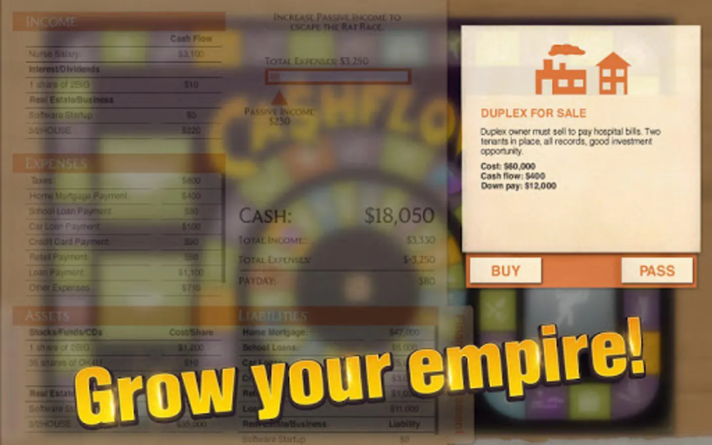 Begin CASHFLOW in the Rat Race working in a variety of professions while you implement your investment strategy to become the next business or real estate mogul. Avoid the pitfalls of bad deals, friends asking for handouts, lawsuits, and getting laid off from your job.