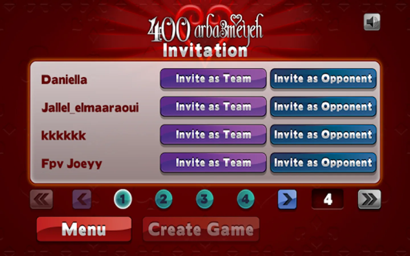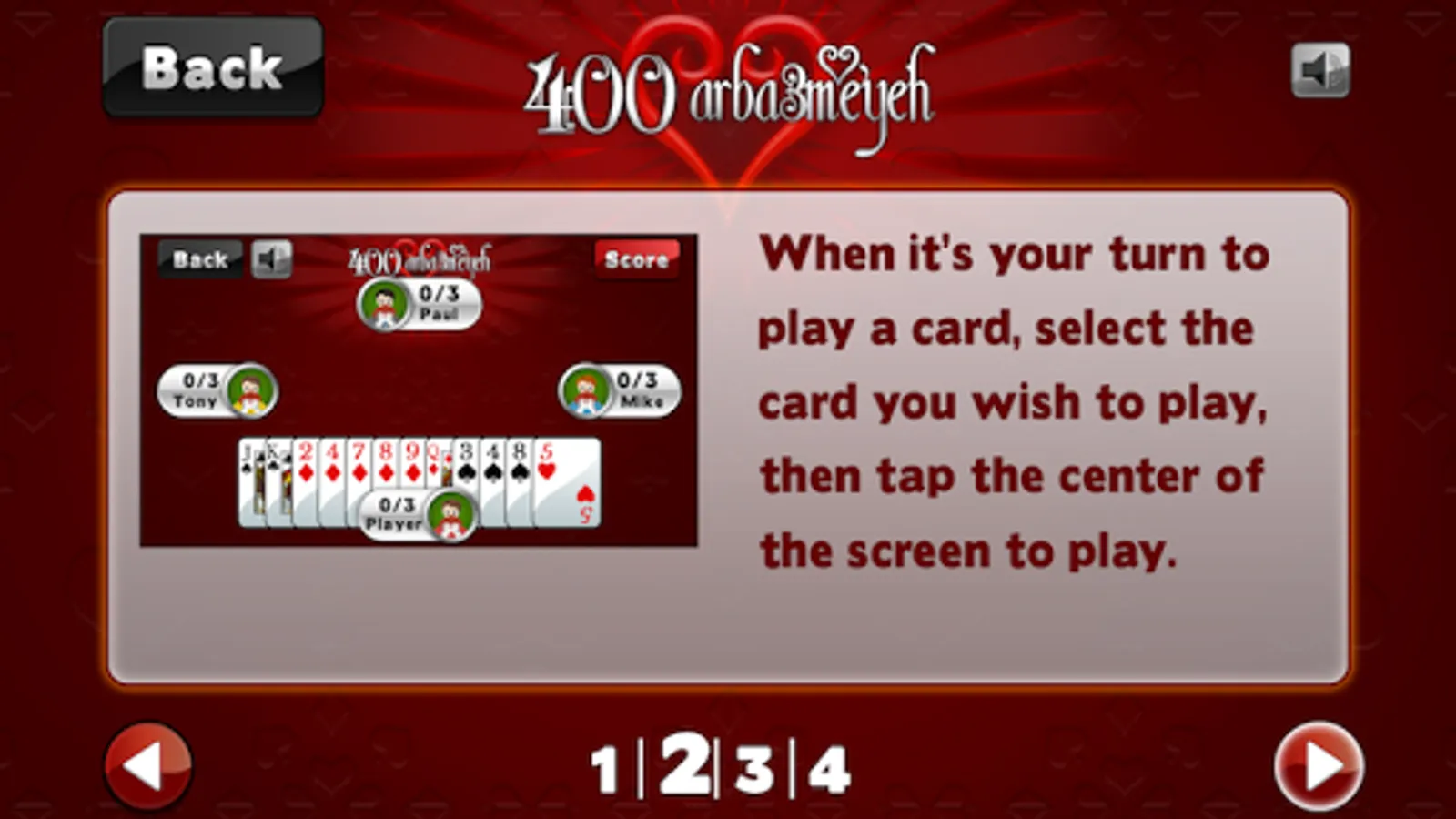 This great app also includes a inbuilt Scoreboard that you can use when playing Arba3meyeh with cards at home with your family and friends, instead of using paper and pen! This scoreboard automatically calculates all scores; sets minimum bets, allows renaming of players!