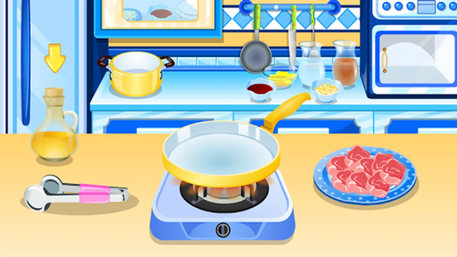 In the other restaurant games you can upgrade to , you have to cook meat , cook quesadilla and cook fish food !