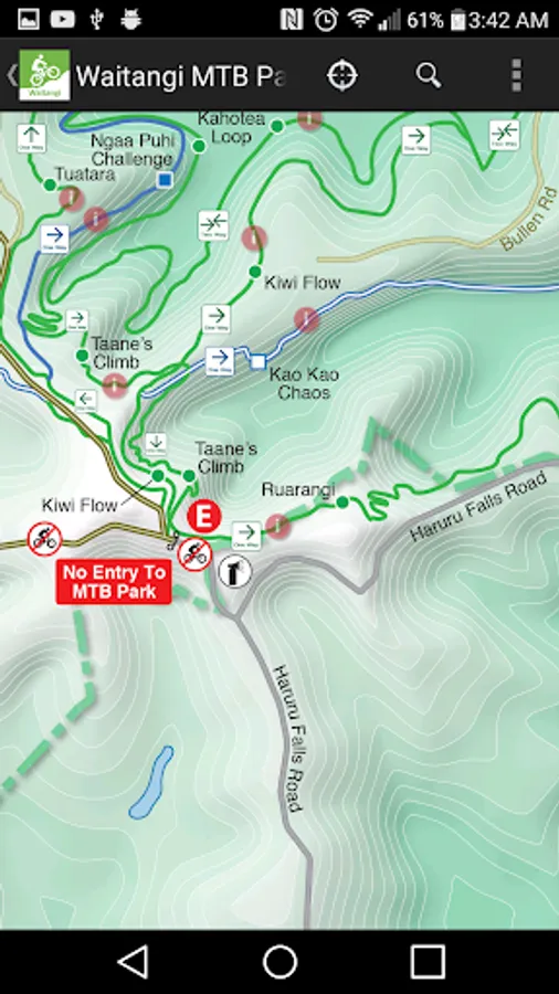This Trailmapps App is for the Waitangi Mountain Bike Park, located in New Zealands Bay of Islands, near the town of Paihia. The App features a full colour zoomable map of the mountain bike trail network and uses the GPS to show your position on the map. Detailed trail descriptions written by locals help to plan your ride. The app is regularly updated with new trails. Once the app is downloaded no phone data is required while using the app.