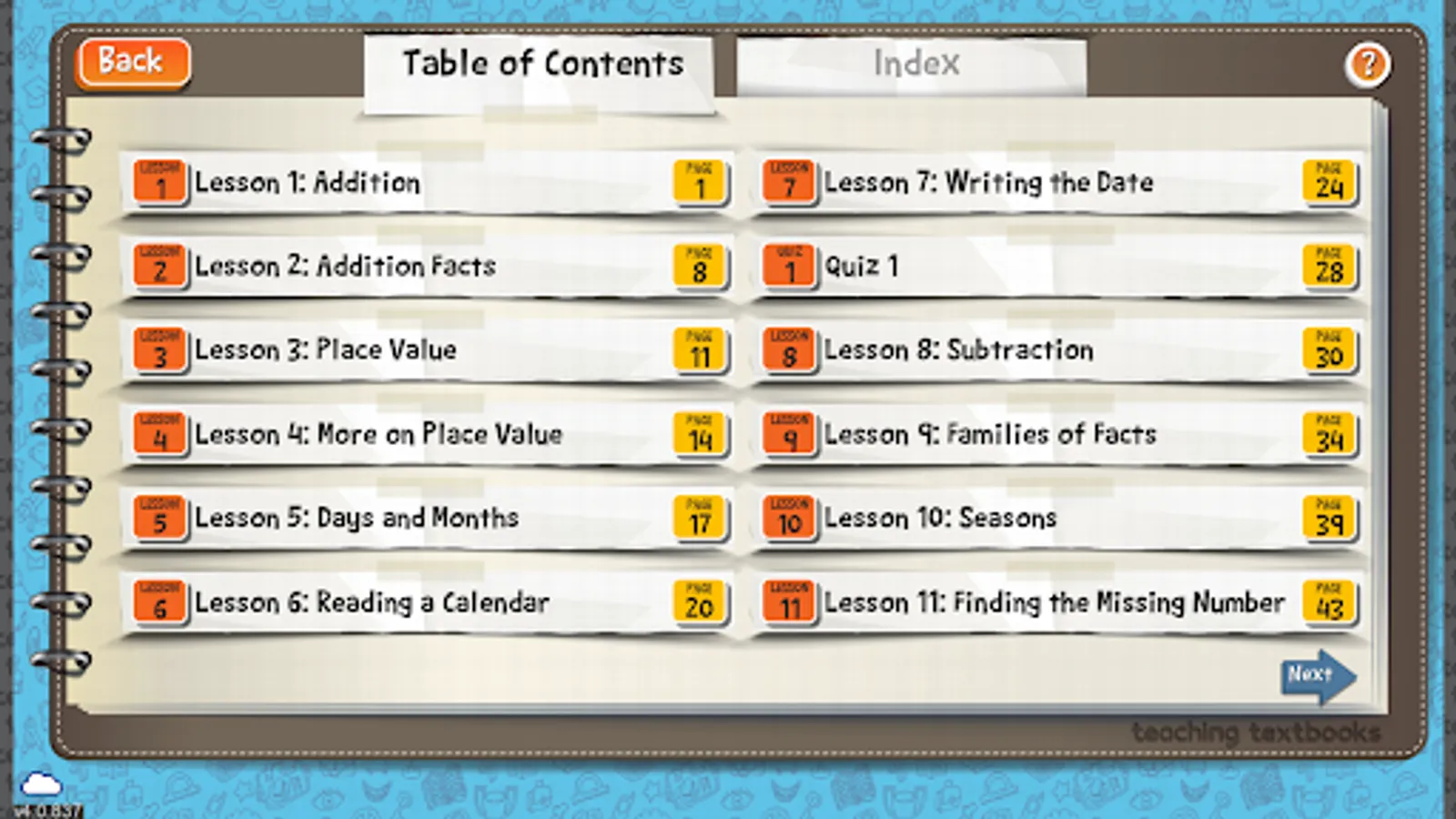 • the digitized version of the printed Teaching Textbooks Math 4 textbook (with a search feature and a hyper-linked index)
