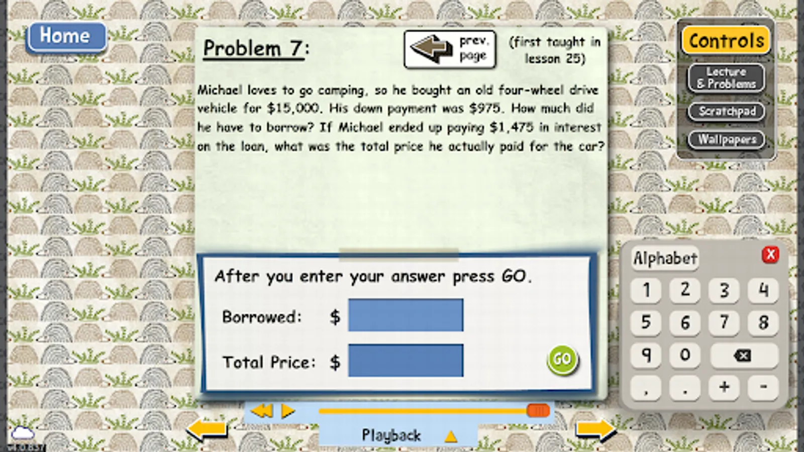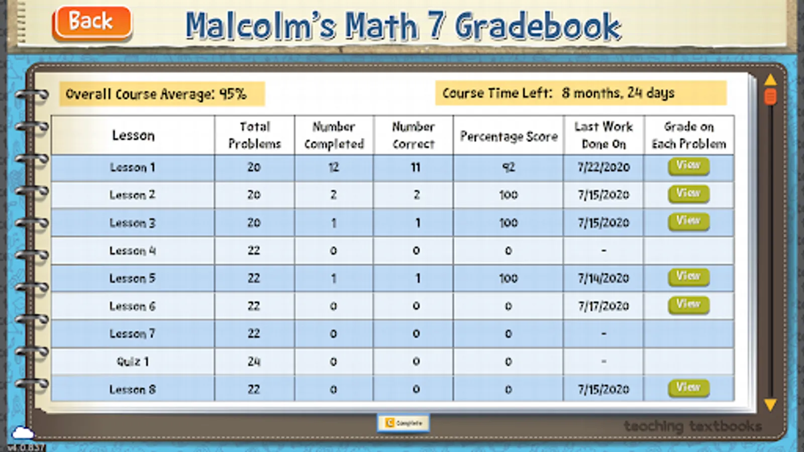 • the digitized version of the printed Teaching Textbooks Math 7 textbook (with a search feature and a hyper-linked index)