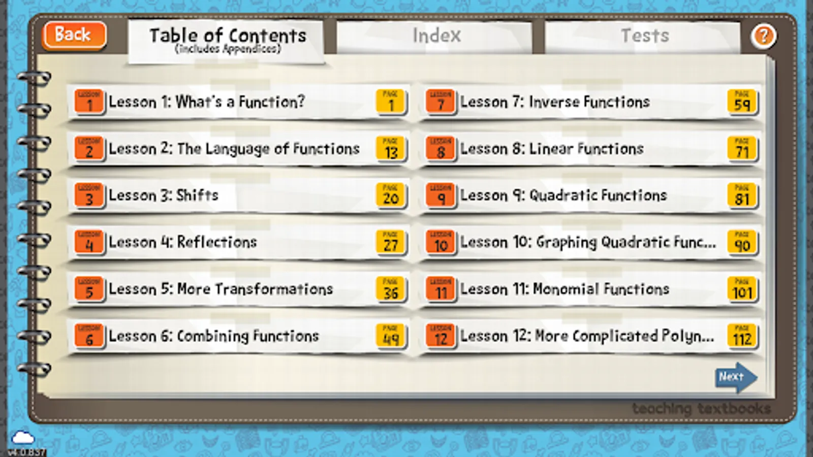 • the digitized version of the printed Teaching Textbooks Pre-Calculus textbook (with a search feature and a hyper-linked index)