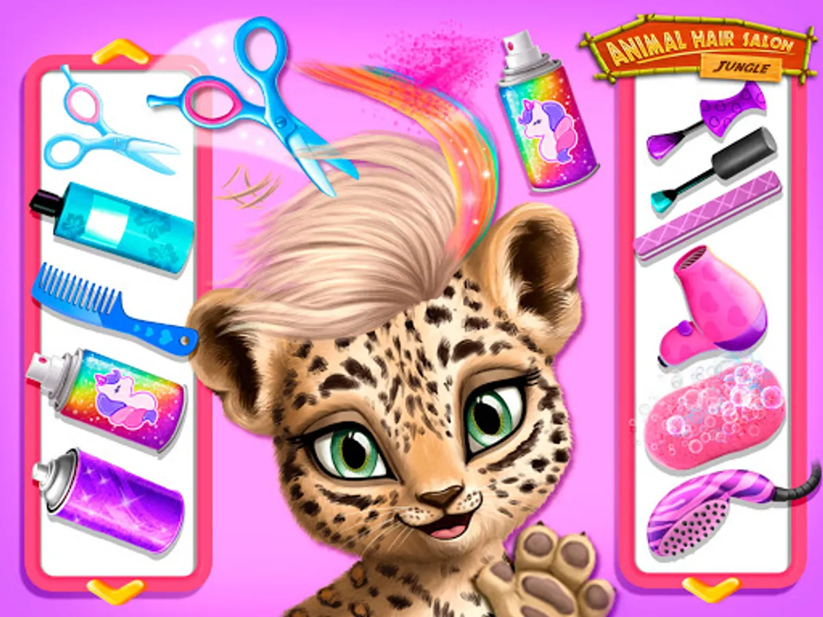 Animal Hair Salon girl games have unique locations: jungle, rock show, Santa’s village or Australia! In Animal Hair Salon virtual pet care and haircut games, kids can learn about and play with animals from all around the world. They may look different but they all share the same passion for freedom and fashion! Enjoy endless creativity, style makeovers, hair care fun and fashion dress ups in our virtual pet care, beauty salon, haircut and makeup games for kids!