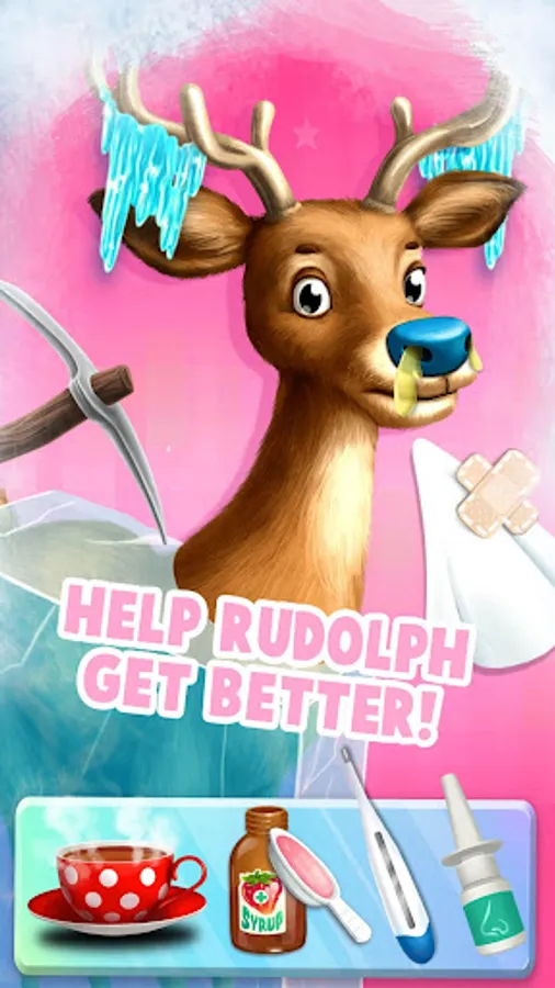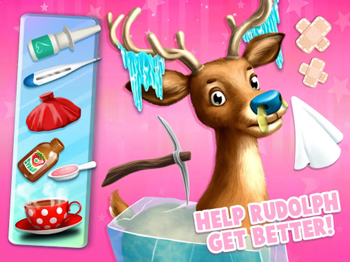 Oh no, Santa’s favorite reindeer Rudolph is frozen in ice! Rescue Rudolph before it has to travel around the world on Christmas Eve or kids won’t get their Christmas presents on time! Melt the frozen ice, clean up and take care of Rudolph, and treat this lovely reindeer with hot tea and honey!