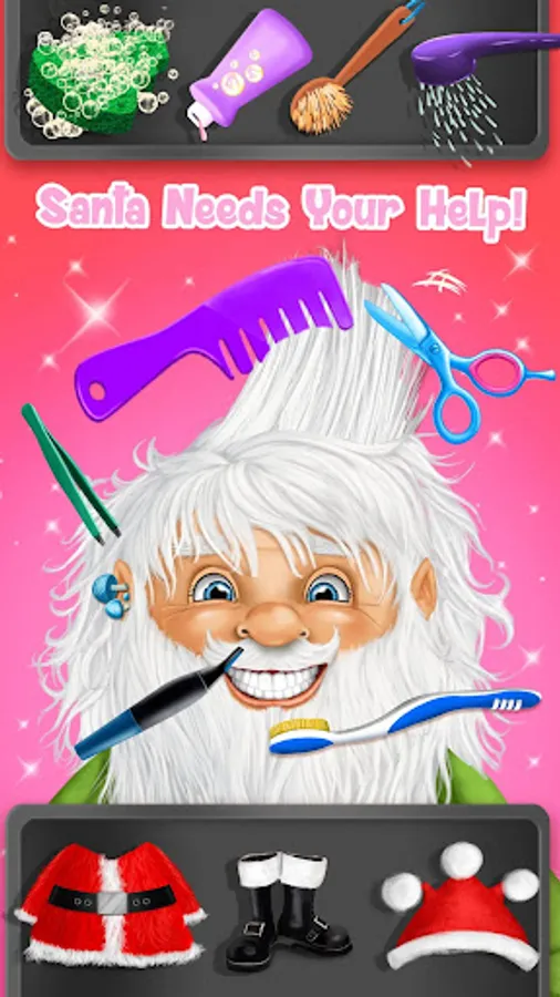 Santa just woke up from his long sleep. Help him prepare for Christmas and holiday season! Wash and brush his teeth, cut hair and nails, and clean up his ears and nose. You will get a gift from Santa for this good job!