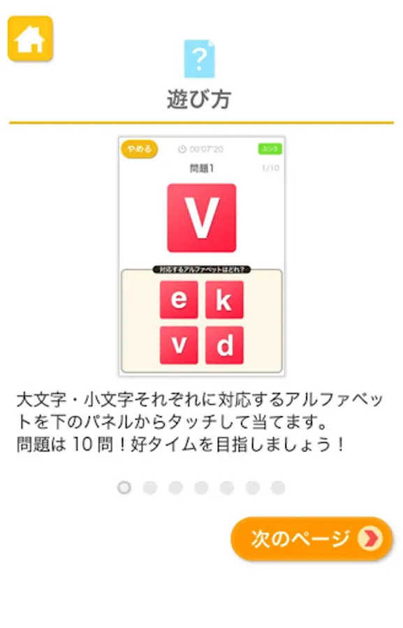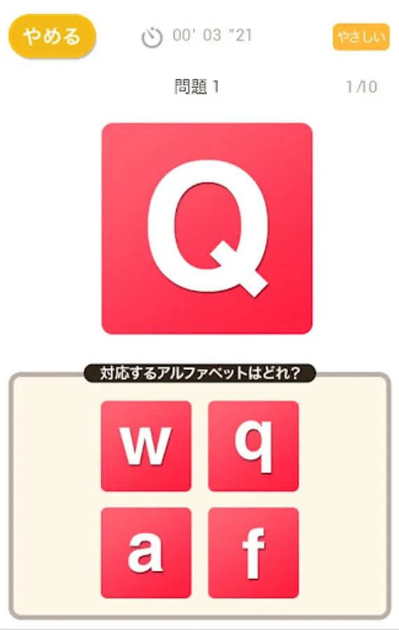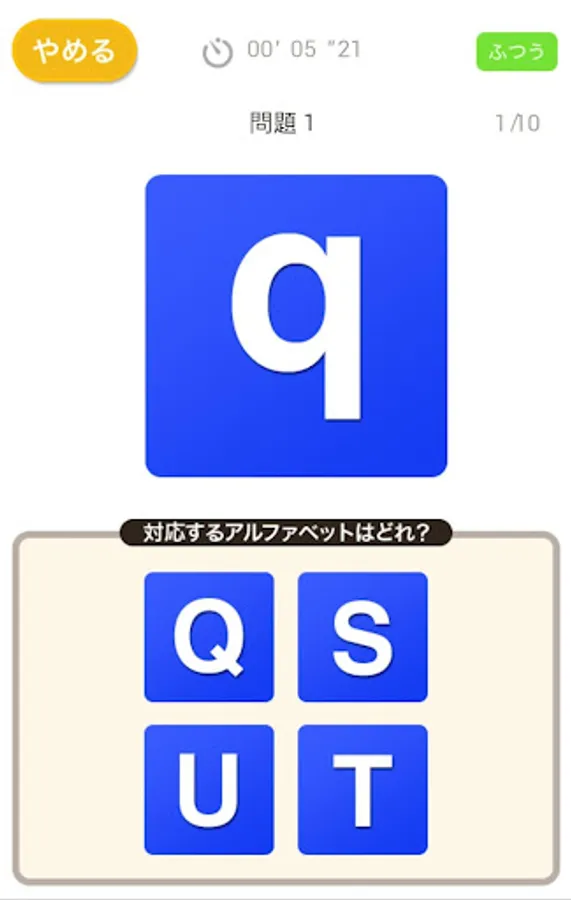 大文字・小文字それぞれに対応するアルファベットを表示されるパネルの中から当てるアプリです。