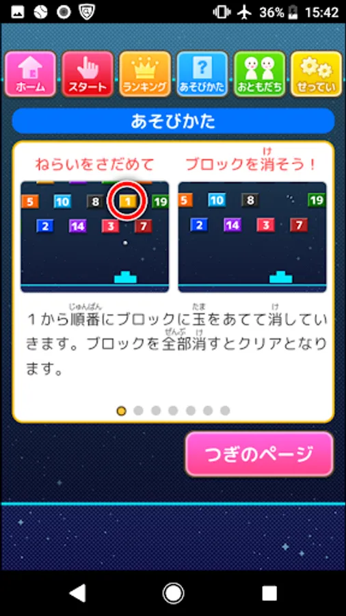 ランダムに並んだ数字ブロックを1から順番に消しながら数字を覚える知育アプリです。