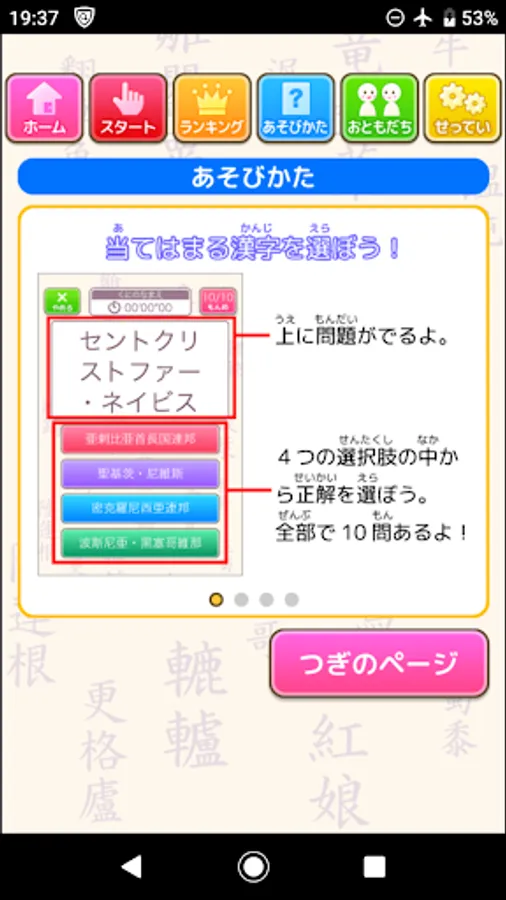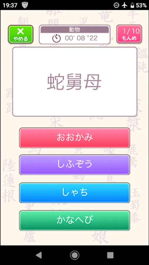It is an application that chooses kanji that applies to how to read the problem from four choices.