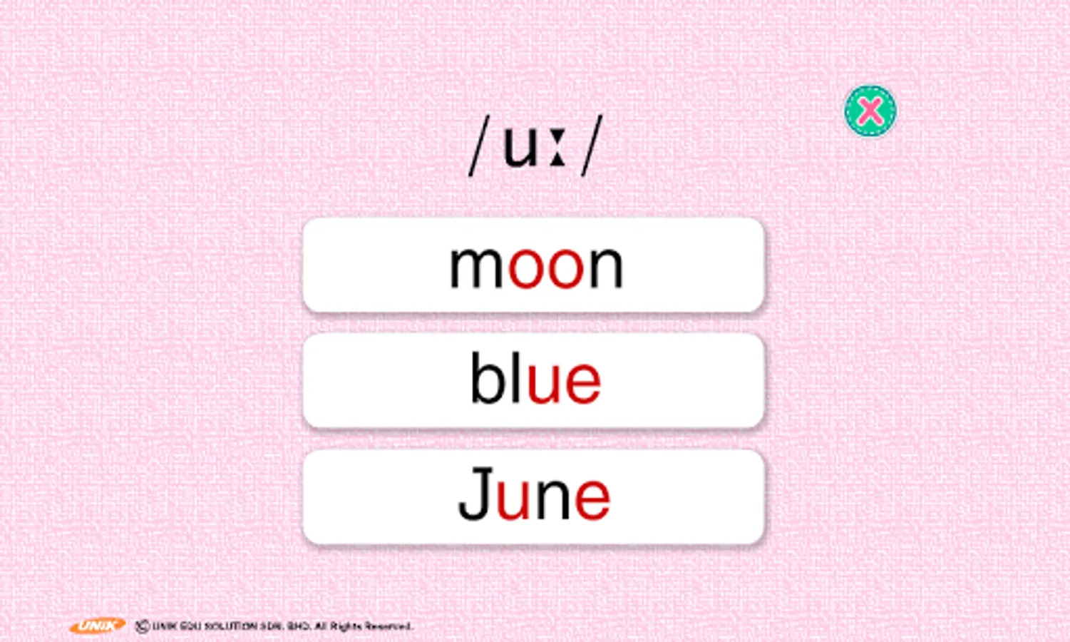 • Pure vowels are arranged according to mouth shape (left to right, lips wide / round - top to bottom, jaw closed / open).