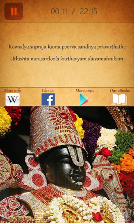 This application plays Suprabhatam audio in the background and displays the corresponding slokam text (In English) on mobile screen.