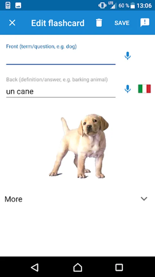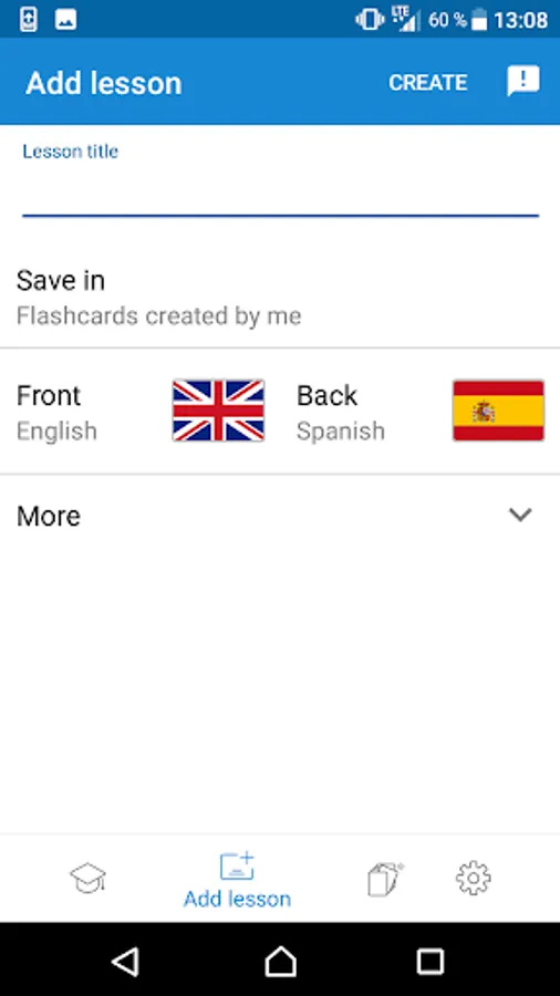 Our other features include using our app as a translator or dictionary. Just type a word in your native language or language you are learning. Apart from the translation, you will be able to add this (with the pronunciation and exemplar usage) to your own flashcards.