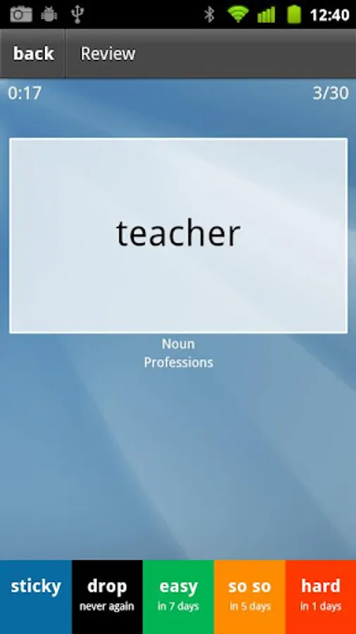 If you need to prepare for a specific exam or topic, you can also focus on specific word categories or level of difficulties. You can choose words from more than 50 word categories and four levels of difficulties.