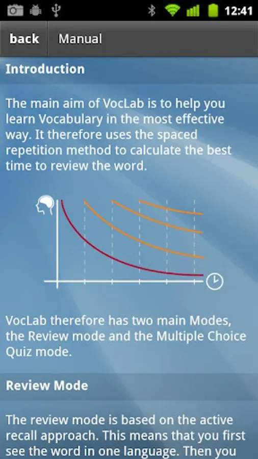 The VocLab algorithm takes care that you always learn words appropriate to your proficiency level.
