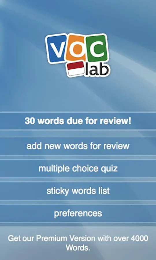 Voclab helps you to learn more than 5000 Indonesian words in no time.