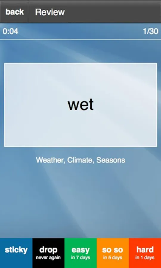 If you need to prepare for a specific exam or topic, you can also focus on specific word categories or level of difficulties. You can choose words from more than 50 word categories and four levels of difficulties.