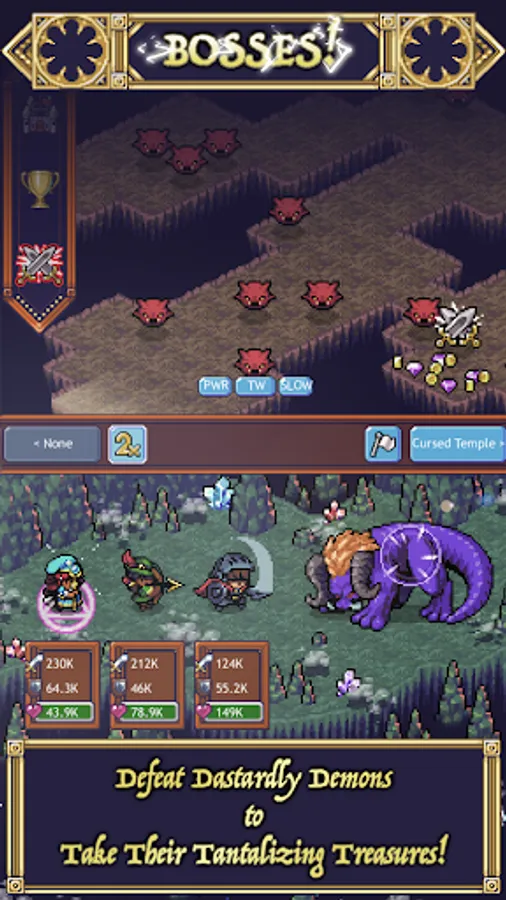 This dungeon crawler will cart you into colossal caves of craven creatures. You’ll have to battle monsters, upgrade equipment & incremental skills and form a party of heroes to crawl deeper into perilous dungeons & caves packed with loot. Upgrade and equip your idle heroes to find treasure in a pixel dungeon, making sure your heroes have enough gear, health and items to protect them from a dungeon doom.